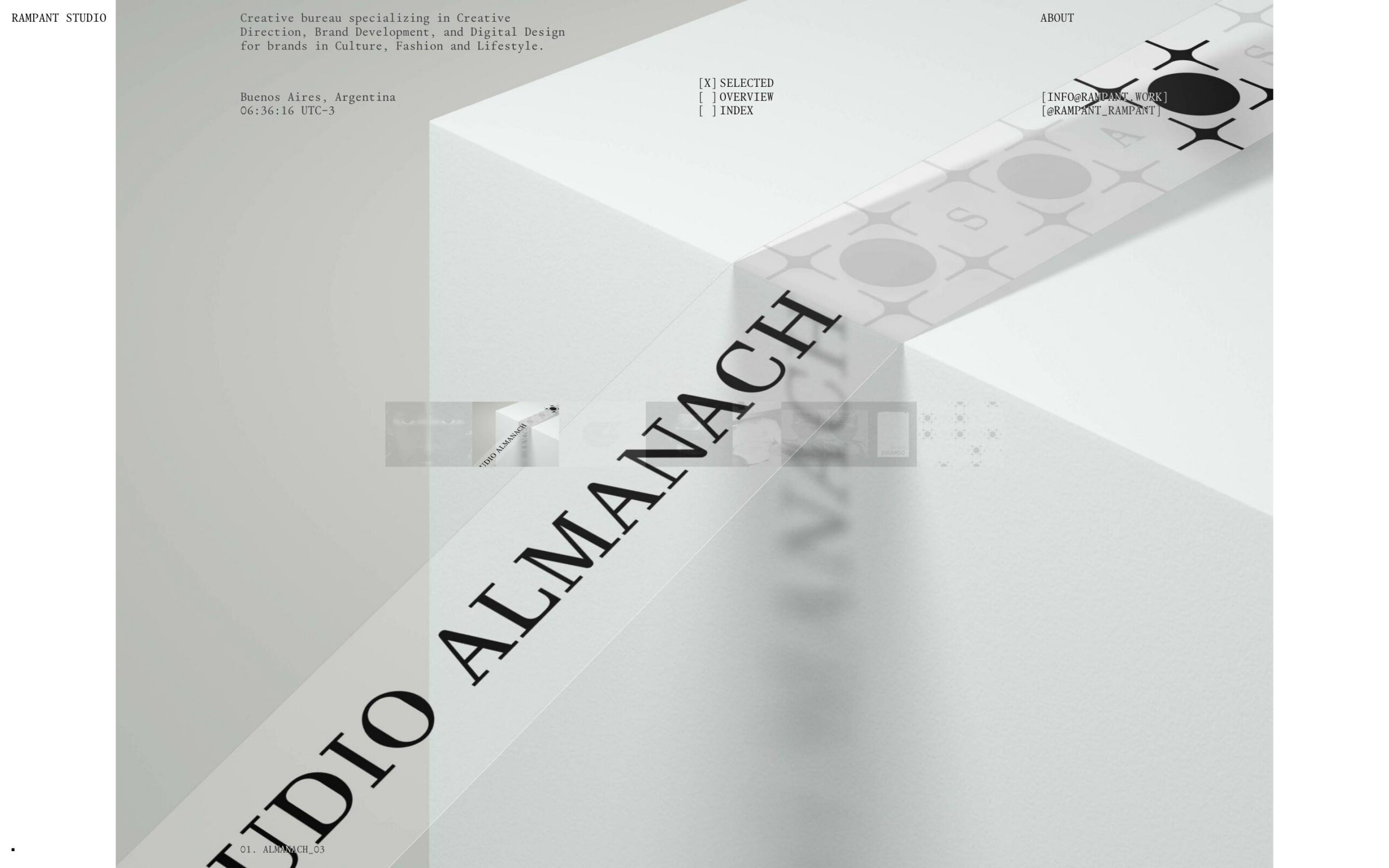 #3D #Animations #Ascii #Asymmetrical Grid #Audio #Bauhaus #Big Images #Big Title #Big Typography #Black & White #Blocks #Blur #Bold #Bright #Brutalist #Buttons #Camera Tracking #Clean #Clock #Collage #Collapsing containers #Colorful #Creative Layout #Cursor Follow #Custom Cursor #Custom Scroll #Dadaist #Dark #Draggable Elements #Duo-tone #E-commerce #Editorial #Forms #Gradient #Grainy #Gray #Grid #Gritty #Halftone #Holding Page #Horizontal Scroll #Hover Events #Illustrations #Industrial #International Style #Large Scale #Layered #Light #List #Lo-FI #Lowercase #Map #Marquee #Mini Site #Minimal #Mixed Style Typefaces #Mode Switch #Mono Typeface #Monotone #Motion #Multicolor #Newspaper #One Page #Overlay Containers #Page Transitions #Parallax #Pattern #Playful #Retro #Rotated Text #Sans Serif Typeface #Scaling #Scroll Events #Scroll Position Animation #Scroll Snap #Serif Typeface #Shapes #Simple #Slider #Small Typography #Split Scroll #Sticky Elements #Stretched Text #Table #Technical #Technologic #Text Highlight #Text Only #Thin #Timeline #Typographic #Uppercase #Variable Title #Vertical Text #Video #White Space #Y Scroll
