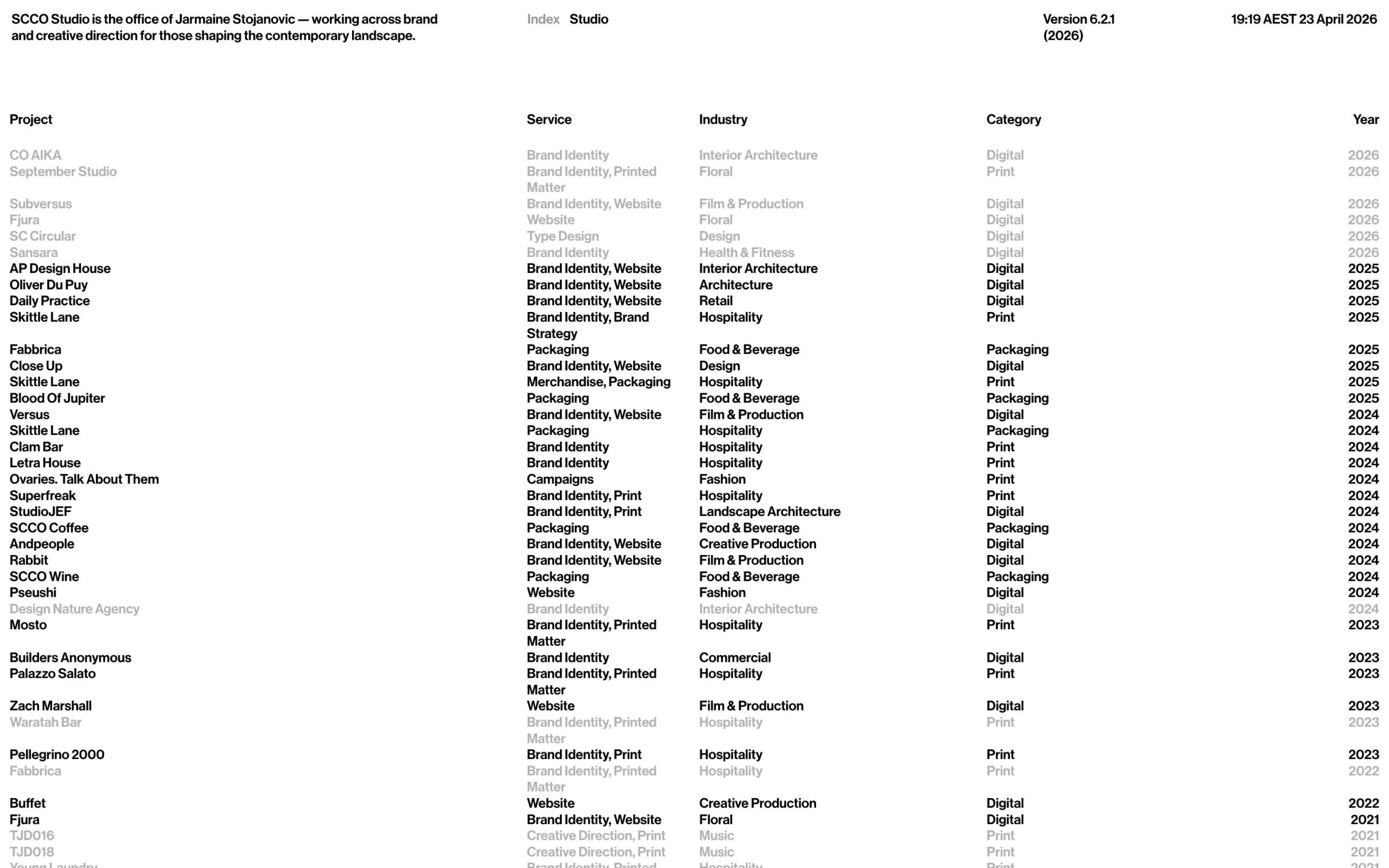 #3D Designer #Academic #Accommodation #Activism #Agency #Architecture #Archival #Art #Art Director #Artist #Association #Athlete #Audio #Awards #Bags #Bakery #Bathware #Beverage #Blog #Book #Booking #Books #Branding #Brewery #Cafe #Catalog #Cause #Ceramic Studio #CGI Studio #Charity #Cinematographer #Cinematography #Clothing #Coffee Brewer #Commerce #Communication #Composer #Construction #Consulting #Corporation #Cosmetics #Coworking Space #Creative #Creative Director #Creative Studio #Culinary #Cultural #Curator #Cycling #Design #Development #Dietician #Digital Artist #Director #Director of Photography #Directory #Dogwear #Drink #E-Commerce #Editor #Editorial #Education #Event #Exhibition #Experience Company #Experimental #Eyecare #Fanzine #Fashion #Film #Finance #Floral #Food #Foundation #Fragrance #Furniture #Gallery #Graphic Design #Grocery #Healthcare #History #Illustrator #Image Making #Incense #Industrial #Industrial Designer #Initiative #Institute #Interdisciplinary #Interior Design #Interior Designer #Jewelry #Law #Library #Lifestyle #Lighting #Lingerie #Magazine #Makeup Artist #Management #Manufacturing #Marketing #Medical #Motion Designer #Museum #Music #Musical Instruments #Nonprofit #Olive Oil #Opthalmology #Organization #Packaging #Performing Arts #Perfumes #Personal #Photography #Platform #Portfolio #Post Production #Printing #Product #Production #Publication #Publishing #Radio #Reading #Real Estate #Record Label #Record Store #Report #Research #Retouching #Sculpture #Set Designer #Shop #Skincare #Social #Sound Design #Study #Stylist #Surveying #Tattoo #Technology #Textile #Theatre #Thesis #Tiles #Tool #Typefaces #Venue #Video Editor #Visual #Visual Artist #Web Developer #Winery #Workshop #Workspace #Workware #Writer #Yoga
