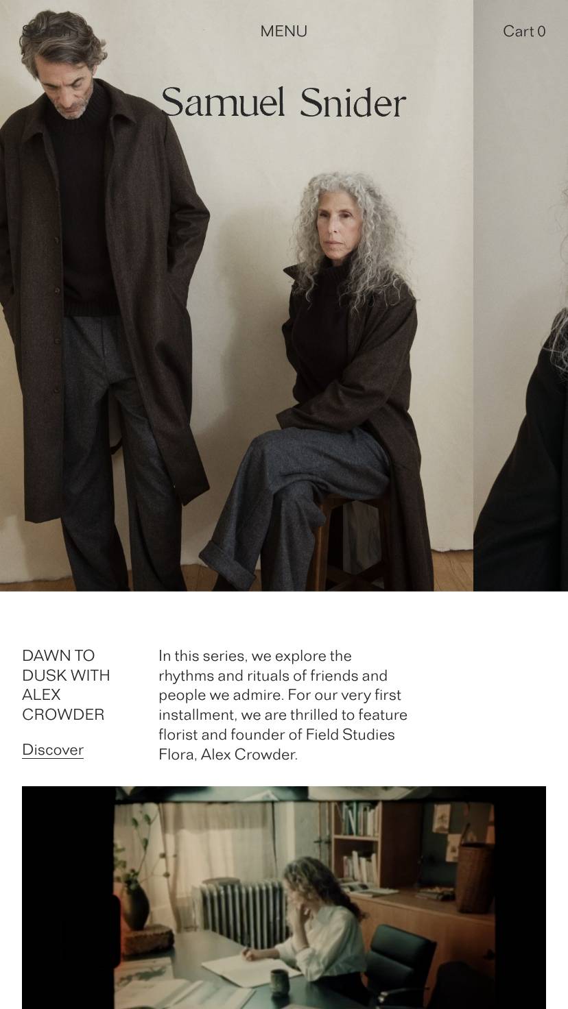 1320 samuelsnider.com Fashion, Bright, Clean, Large Scale, Layered, Light, List, Minimal, Overlay Containers, Sans Serif Typeface, Small Typography, White Space, Black, USA. Design: Thomas Hervé Studio. Development: Open Statement. (29-11-25) Permalink, ←Esc
