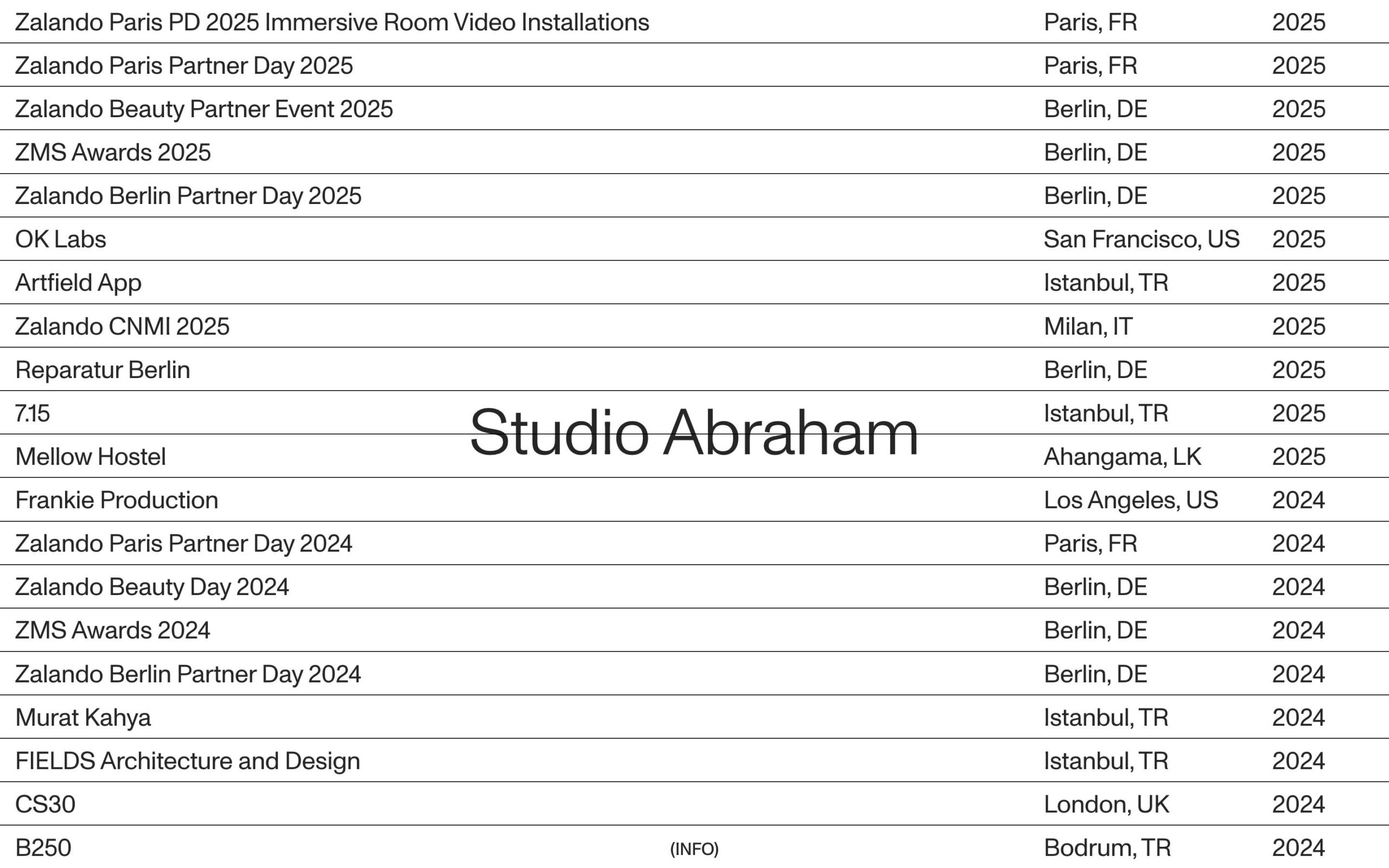 1316 studioabraham.com Design, Big Title, Big Typography, Blur, Brutalist, Clean, Large Scale, Layered, Light, Overlay Containers, Sans Serif Typeface, Technical, Black, White, Turkey. Design: Studio Abraham. Development: Studio Abraham. (27-11-25) Permalink, ←Esc