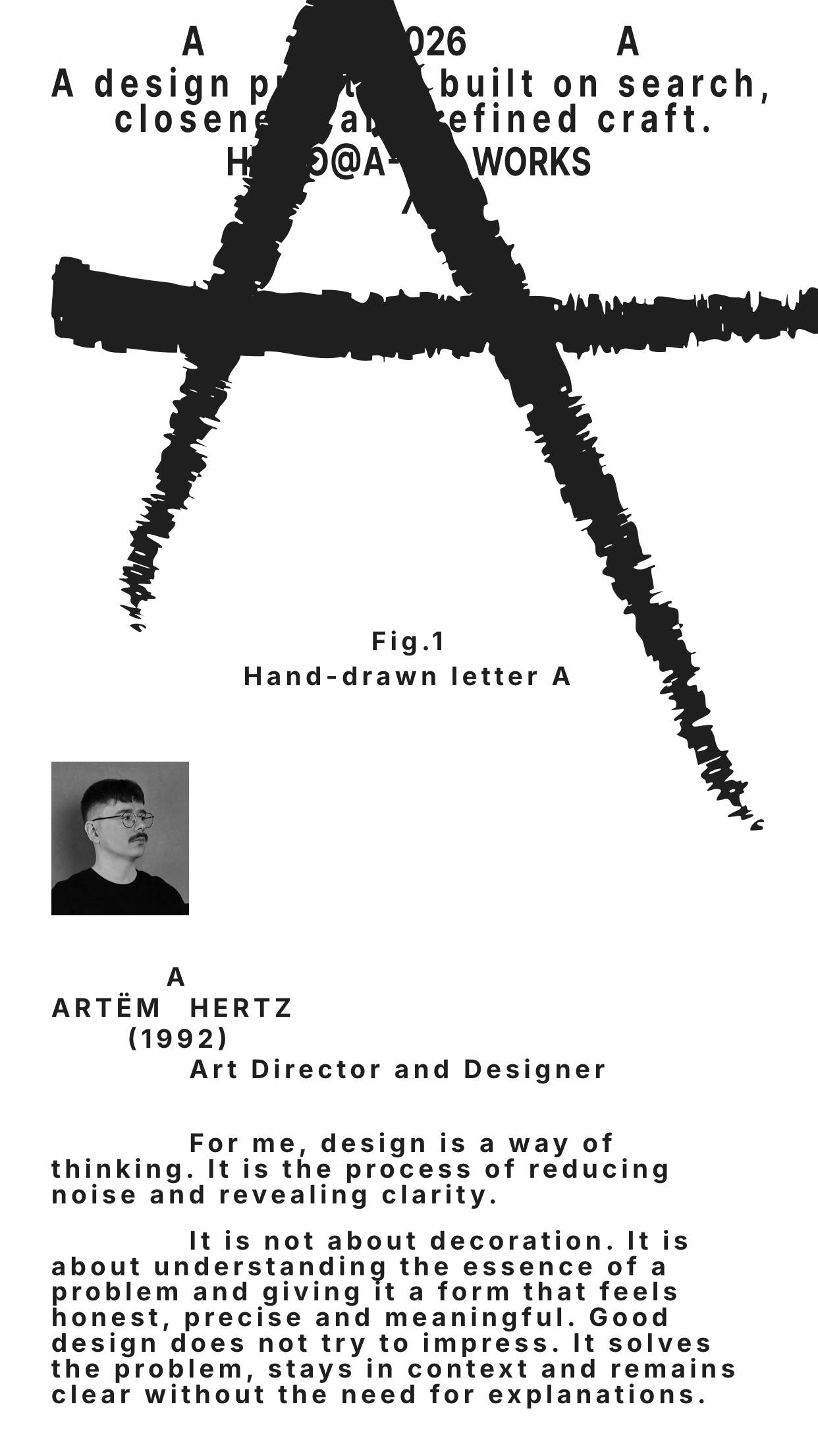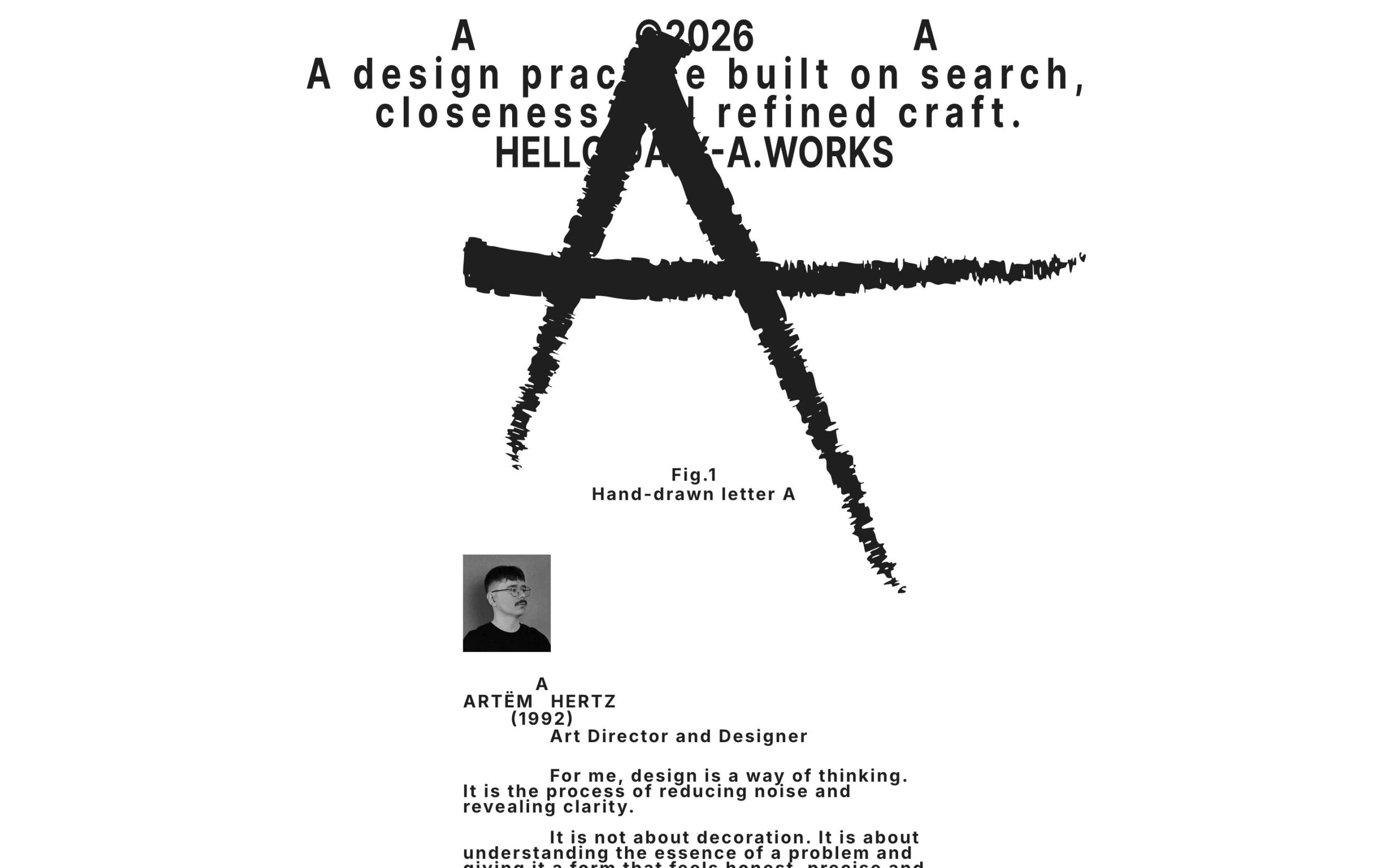 1353 a-y-a.works Design, Big Typography, Black & White, Bold, Brutalist, Light, One Page, Sans Serif Typeface, Simple, Typographic, White Space, Black, White, Armenia. Design: Artem Hertz. Development: Yana Karpenko. (16-01-26) Permalink, ←Esc