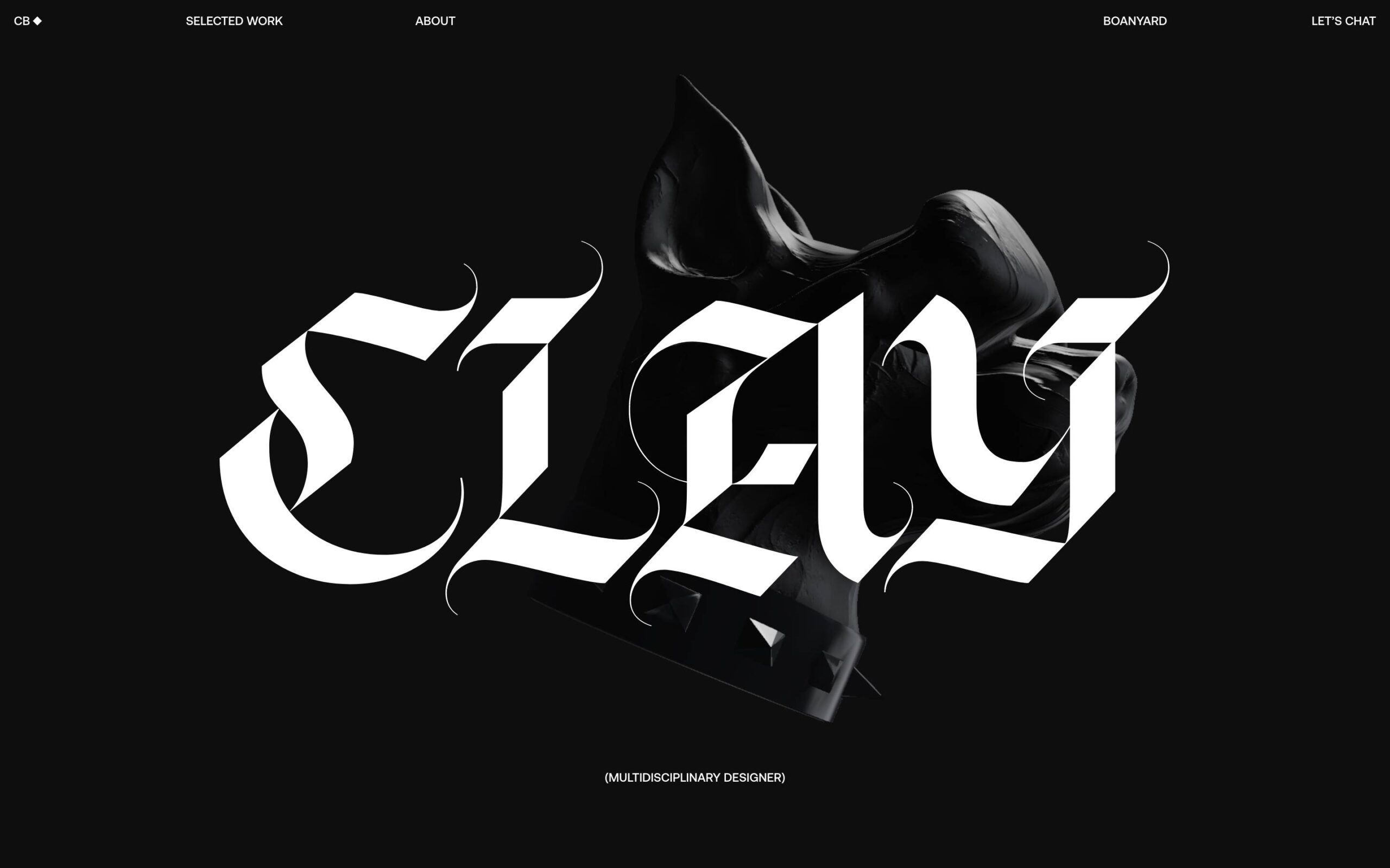 1344 clayboan.com Design, Animations, Big Title, Big Typography, Clean, Dark, Large Scale, Light, List, Mixed Style Typefaces, Scroll Position Animation, Technical, Uppercase, Video, White Space, Black, White, USA. Design: Clay Boan. Development: Rob Smittenaar, Ruud Luijten, Thomas Van Glabeke. (06-01-26) Permalink, ←Esc