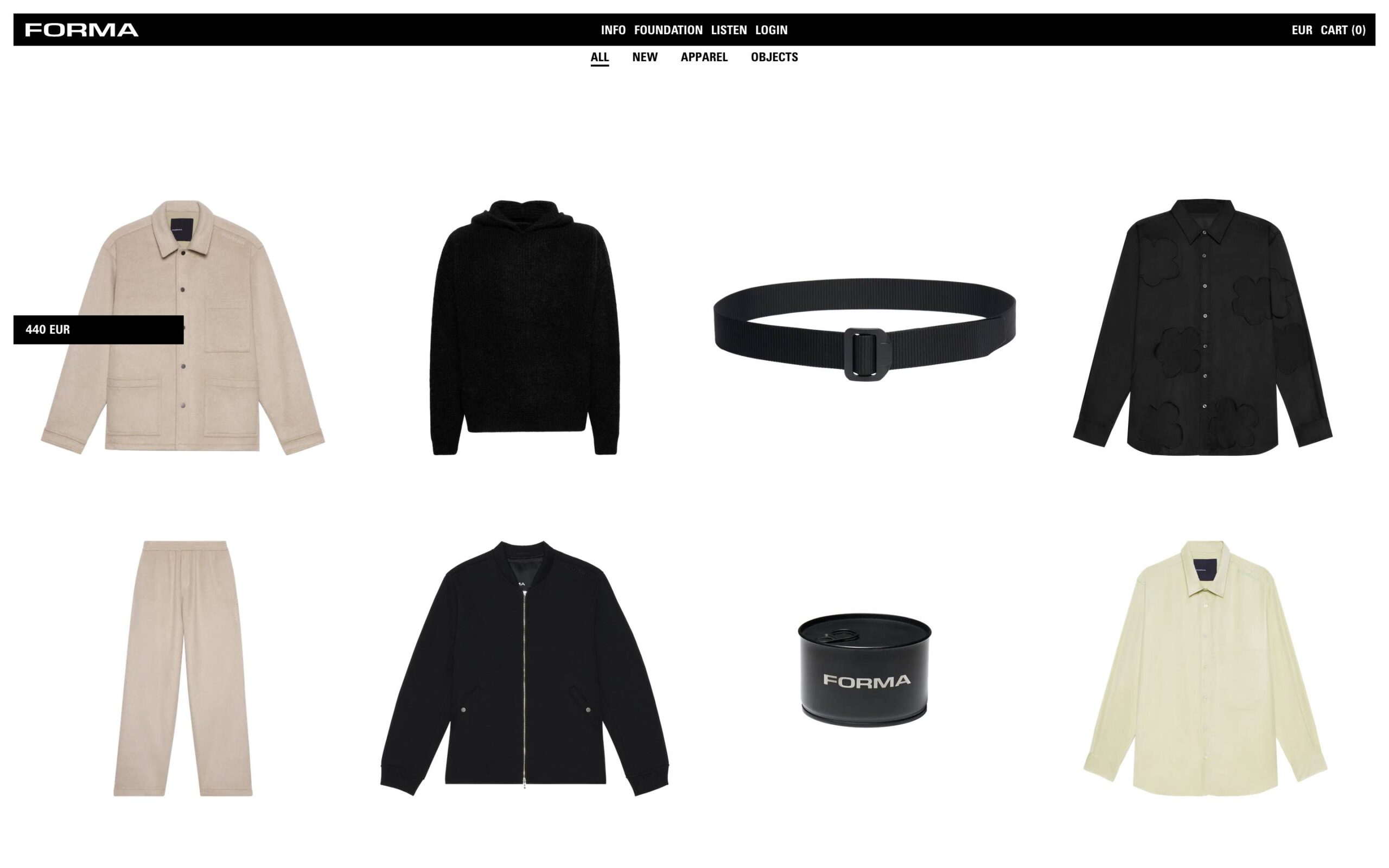 1347 forma.gallery E-Commerce, Bright, Brutalist, Clean, Grid, Industrial, Large Scale, Light, Minimal, Sans Serif Typeface, Simple, Small Typography, Technical, Black, White, France. Design: Axel Pelletanche. Development: Tristan Bagot. (09-01-26) Permalink, ←Esc