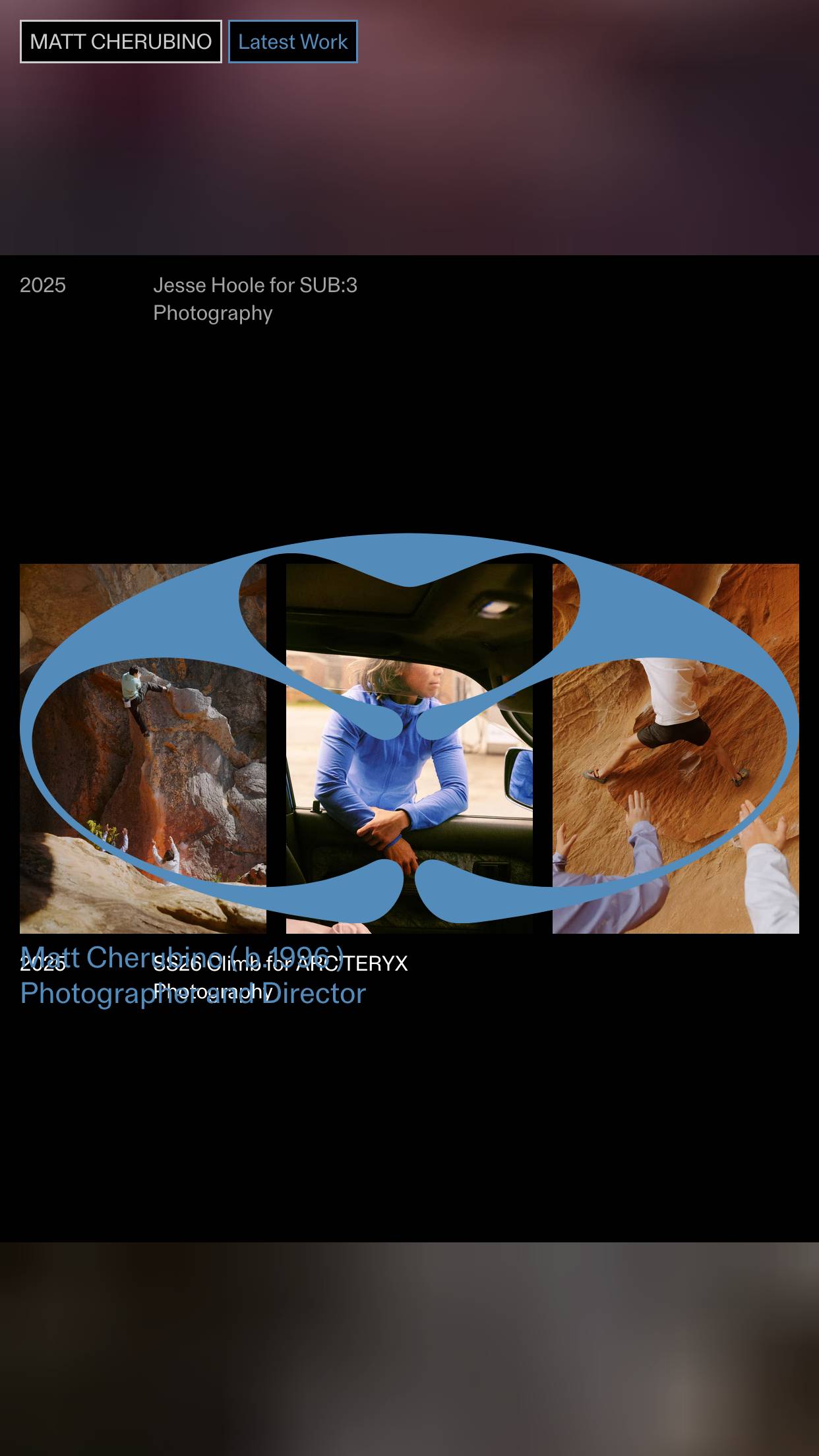 1346 mattcherubino.com Photography, Clean, Dark, Hover Events, Large Scale, Layered, Minimal, Motion, Overlay Containers, Sans Serif Typeface, Scroll Events, Shapes, Simple, Video, White Space, Black, Lavender, Australia. Design: Joshua Briones-Yap. Development: Laird Kruger. (08-01-26) Permalink, ←Esc
