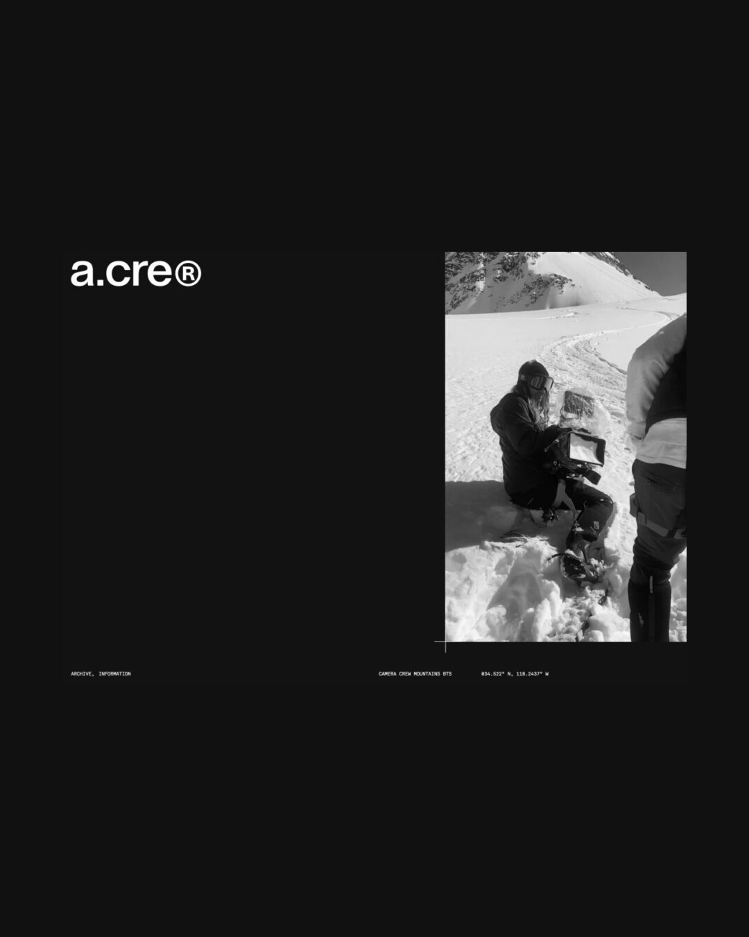 0771 acrecreative.com Production, Big Title, Dark, Large Scale, Overlay Containers, White Space, Black, Silver, USA. Design: Mouthwash Studio. Development: Buena Suerte. (11-12-2023) ←Close