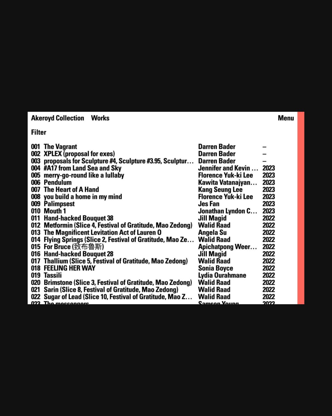0653 akeroydcollection.com Art, Big Typography, Brutalist, Large Scale, Light, Multicolor, Typographic, Video, Black, White, United Kingdom. Design: OK-RM. Development: Daniel Hirunrusme. (12-06-2023) ←Close