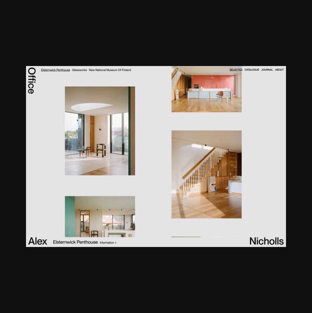 0472 officealexnicholls.com Architecture, Animations, Clean, Creative Layout, Gray, Grid, Large Scale, Page Transitions, Scroll Events, Typographic, Silver, Vanilla, Australia. Design: Gemma Mahoney. Development: Gemma Mahoney. (17-06-2022) ←Close