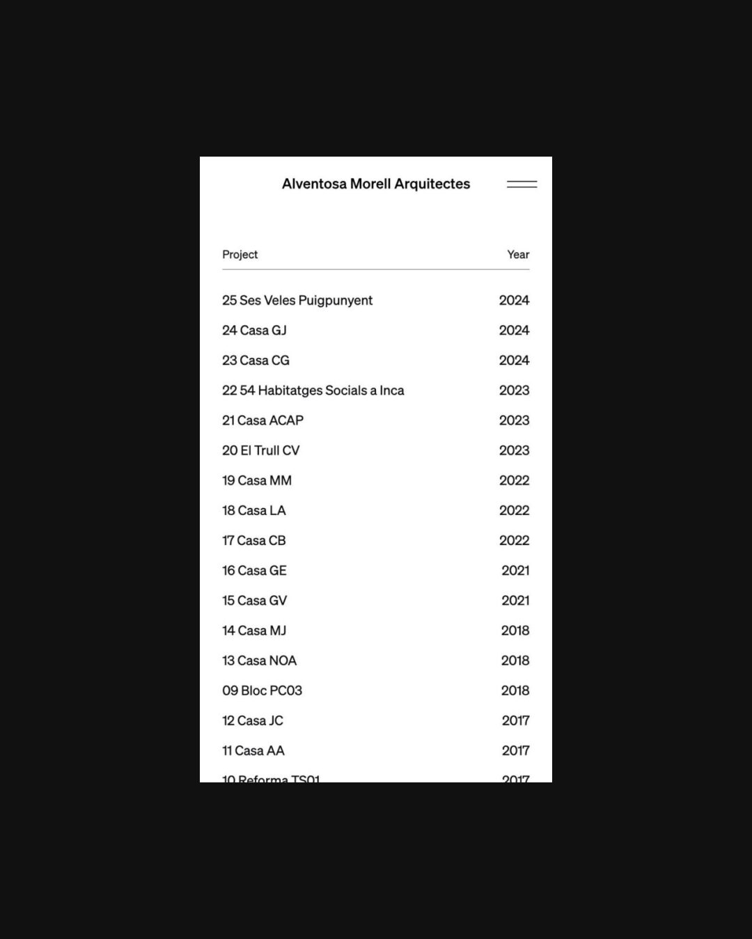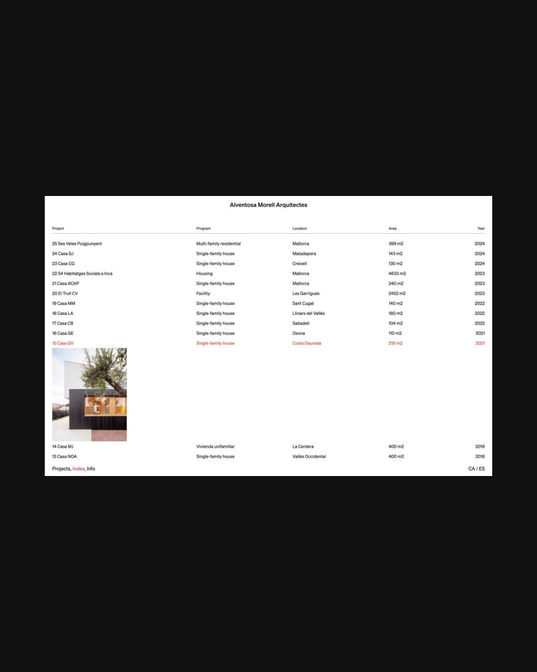 1203 alventosamorell.com Architecture, Bright, Clean, Grid, Large Scale, Light, Minimal, Sans Serif Typeface, Slider, Table, White Space, Vanilla, White, Spain. Design: Estudio Blende. Development: M4L Studio. (21-07-2025) ←Close