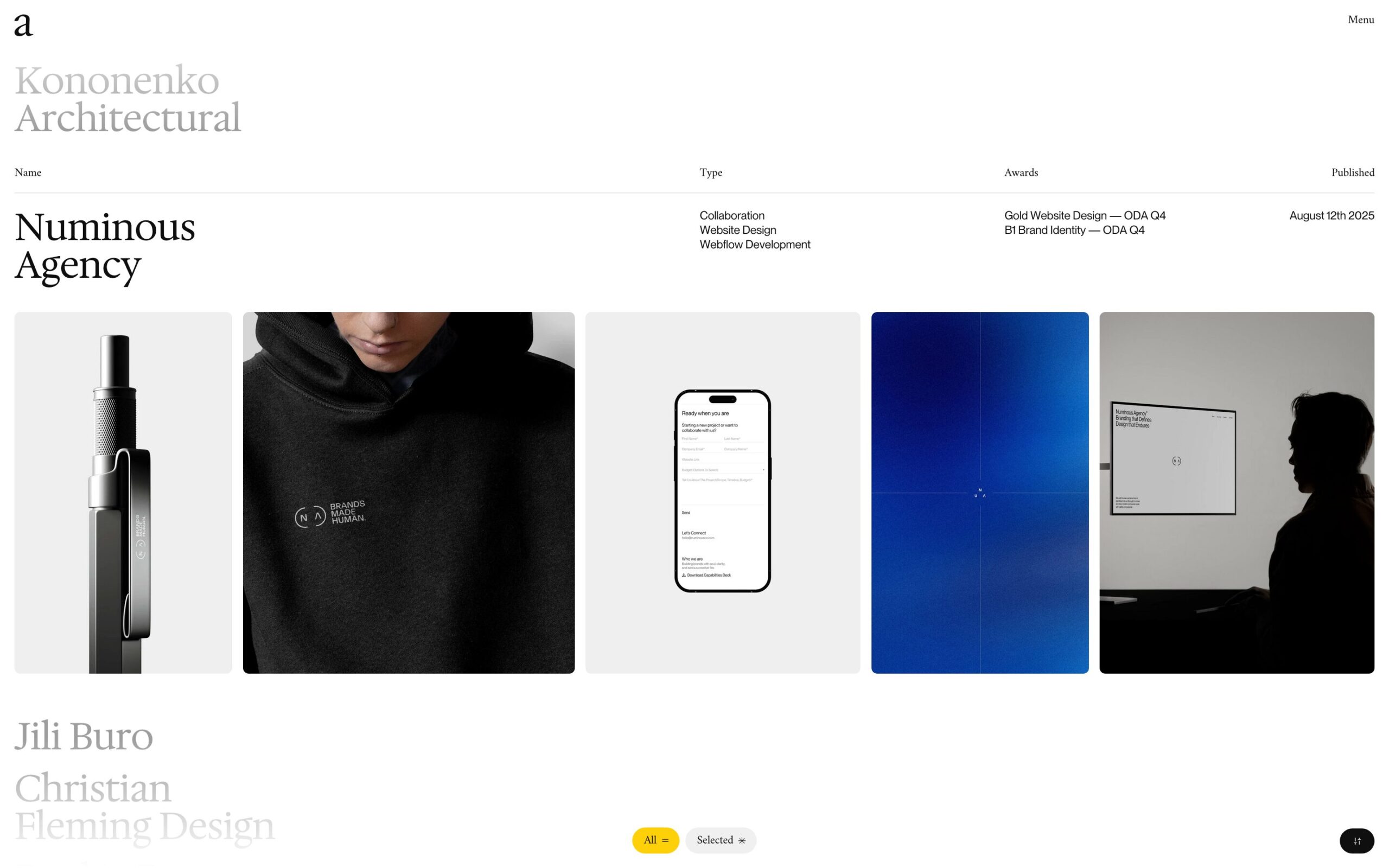 #3D Designer #Academic #Accommodation #Activism #Agency #Architecture #Archival #Art #Art Director #Artist #Athlete #Audio #Awards #Bags #Bakery #Bathware #Beverage #Blog #Book #Booking #Books #Branding #Brewery #Cafe #Catalog #Cause #Ceramic Studio #CGI Studio #Charity #Cinematographer #Cinematography #Clothing #Coffee Brewer #Commerce #Communication #Composer #Construction #Consulting #Corporation #Cosmetics #Coworking Space #Creative #Creative Director #Creative Studio #Culinary #Cultural #Curator #Cycling #Design #Development #Dietician #Digital Artist #Director #Director of Photography #Directory #Dogwear #Drink #E-Commerce #Editor #Editorial #Education #Event #Exhibition #Experience Company #Experimental #Eyecare #Fanzine #Fashion #Film #Finance #Floral #Food #Foundation #Fragrance #Furniture #Gallery #Graphic Design #Grocery #Healthcare #History #Illustrator #Image Making #Incense #Industrial #Industrial Designer #Initiative #Institute #Interdisciplinary #Interior Design #Interior Designer #Jewelry #Law #Library #Lifestyle #Lighting #Lingerie #Magazine #Makeup Artist #Management #Manufacturing #Marketing #Medical #Motion Designer #Museum #Music #Musical Instruments #Nonprofit #Olive Oil #Opthalmology #Organization #Packaging #Performing Arts #Perfumes #Personal #Photography #Platform #Portfolio #Post Production #Printing #Product #Production #Publication #Publishing #Radio #Reading #Real Estate #Record Label #Record Store #Report #Research #Retouching #Sculpture #Set Designer #Shop #Skincare #Social #Sound Design #Study #Stylist #Surveying #Tattoo #Technology #Textile #Theatre #Thesis #Tiles #Tool #Typefaces #Venue #Video Editor #Visual #Visual Artist #Web Developer #Winery #Workshop #Workspace #Workware #Writer #Yoga