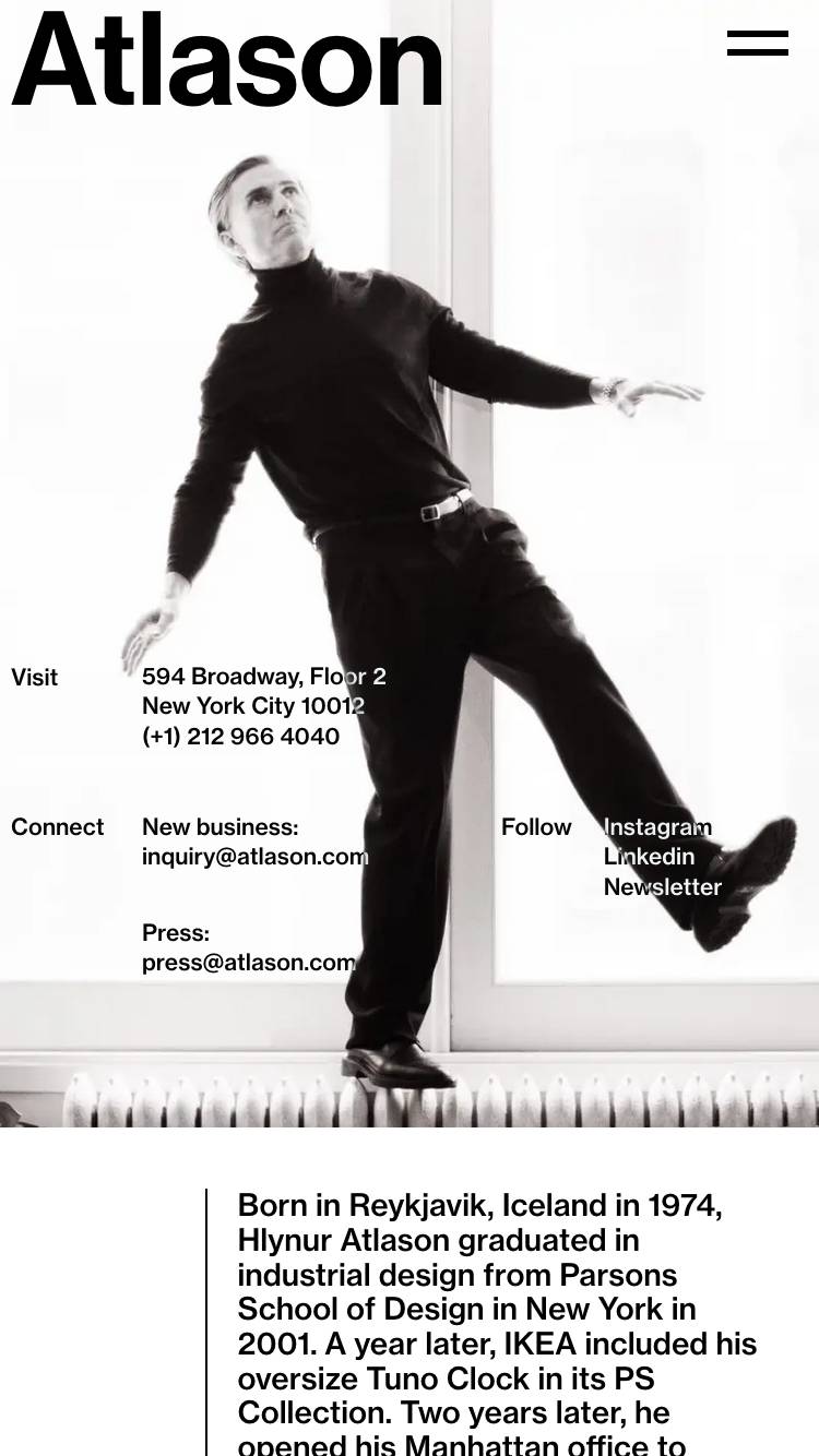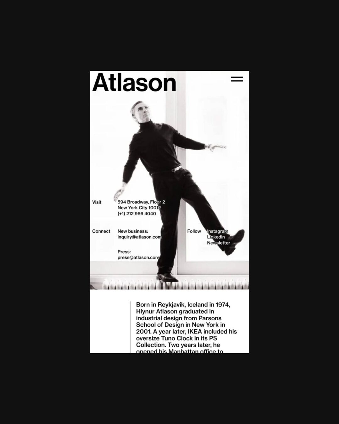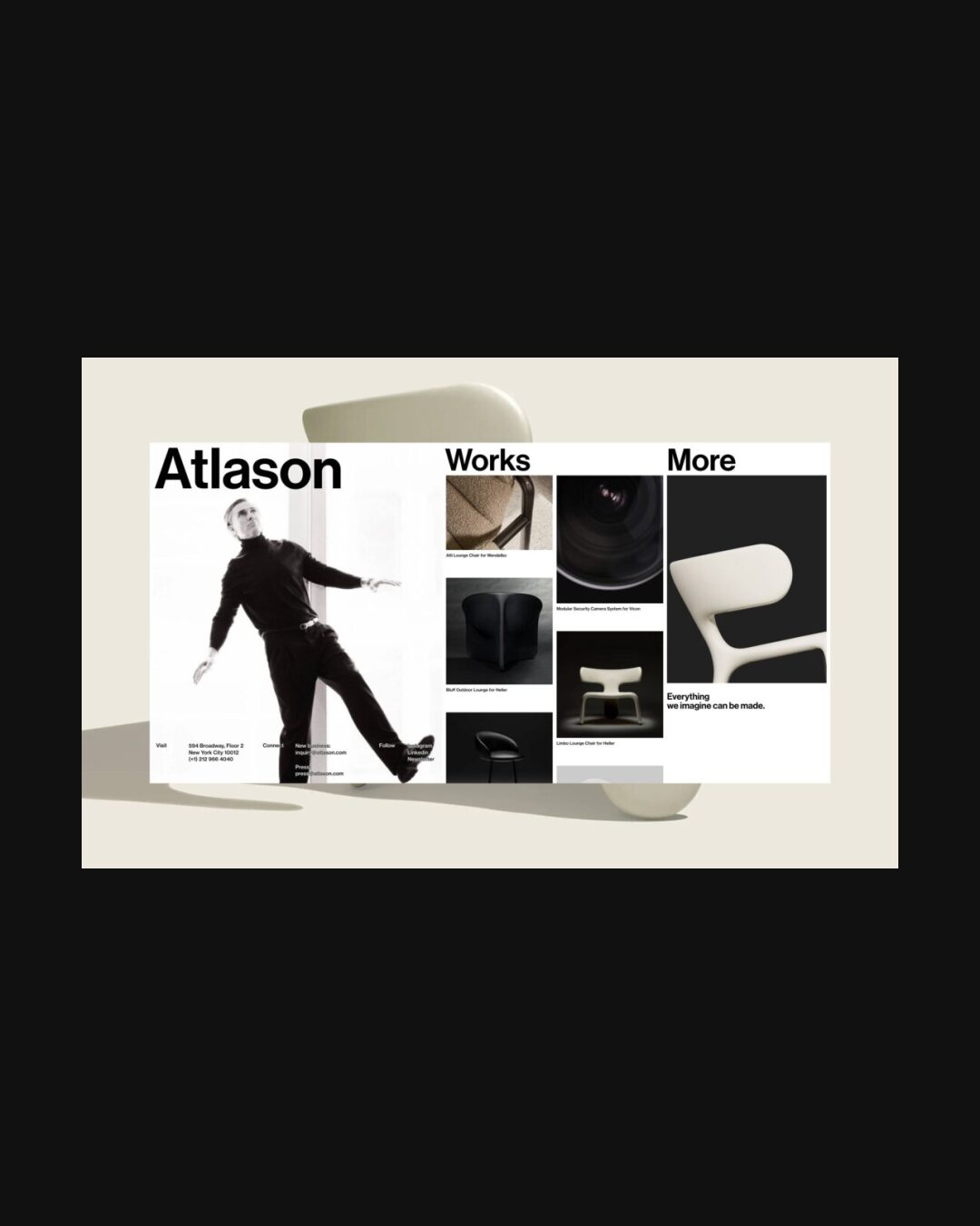 0478 atlason.com Industrial, Animations, Big Images, Big Title, Big Typography, Bold, Clean, Gray, Large Scale, Light, Sans Serif Typeface, Scroll Events, White Space, Gray, Peach, Silver, White, USA. Design: Sons & Co.. Development: Sons & Co.. (19-07-2022) ←Close