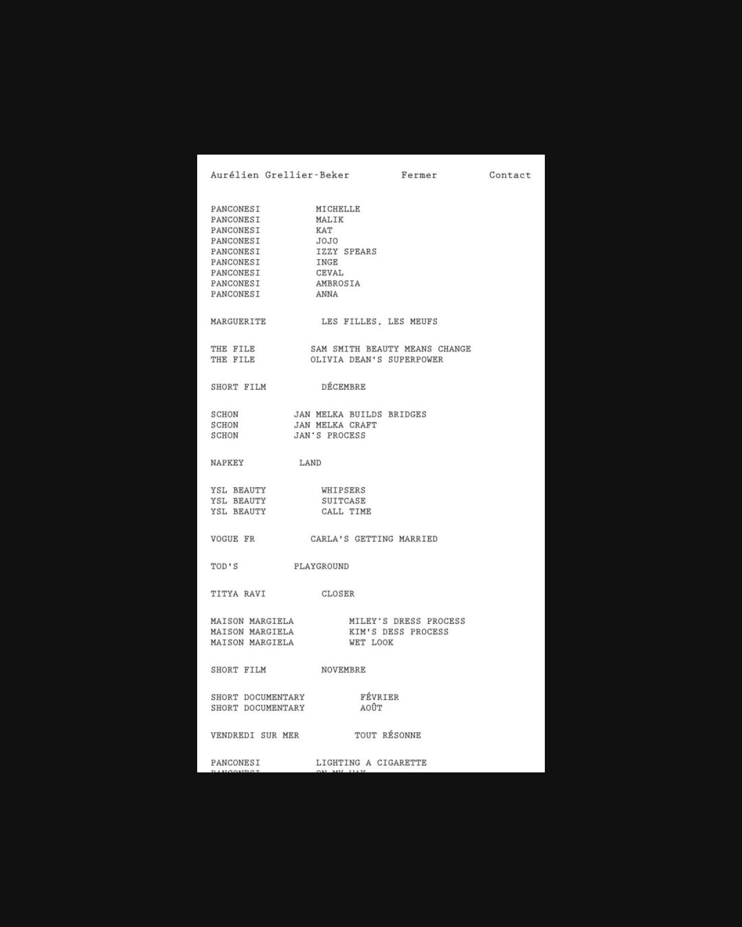 1291 aureliengrellierbeker.com Director, Blocks, Brutalist, Clean, Collage, Grid, Large Scale, Layered, Light, List, Mono Typeface, Overlay Containers, Sans Serif Typeface, Small Typography, Technical, Video, Chocolate, White, France. Design: Joanna Spadiliero. Development: Axel Durand. (24-10-2025) ←Close