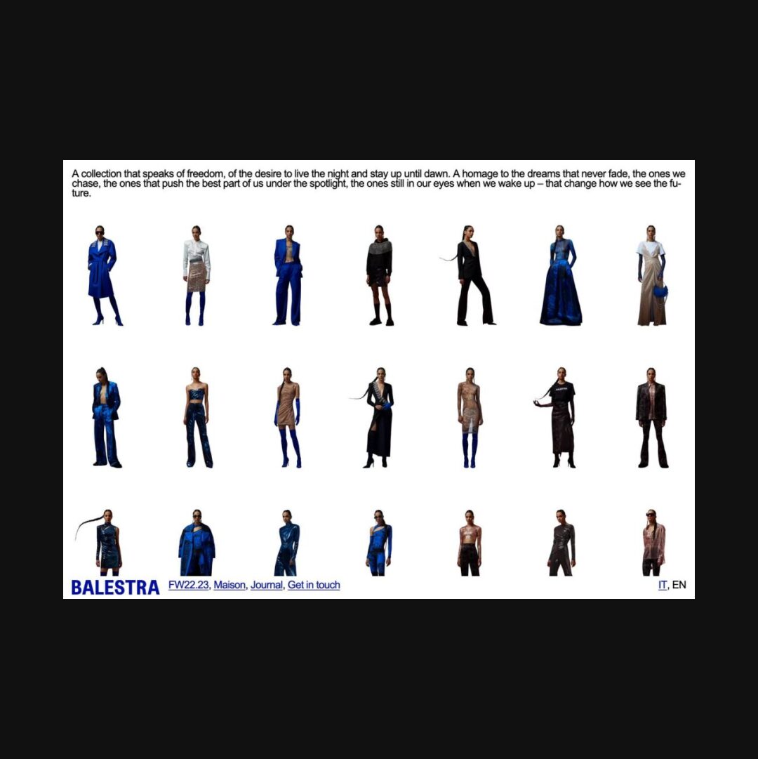 0371 balestraroma.com Fashion, Big Images, Big Title, Big Typography, Clean, Creative Layout, Large Scale, Light, Simple, White Space, Black, White, Italy. Design: Norma. Development: Norma. (12-03-2022) ←Close