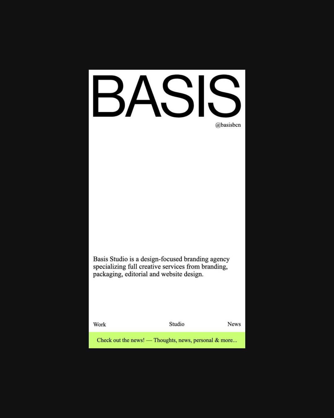 0381 basisbcn.com Design, Big Images, Big Title, Clean, Creative Layout, Grid, Large Scale, Light, Playful, White Space, Black, White, Spain. Design: Basis. Development: Basis. (08-04-2022) ←Close