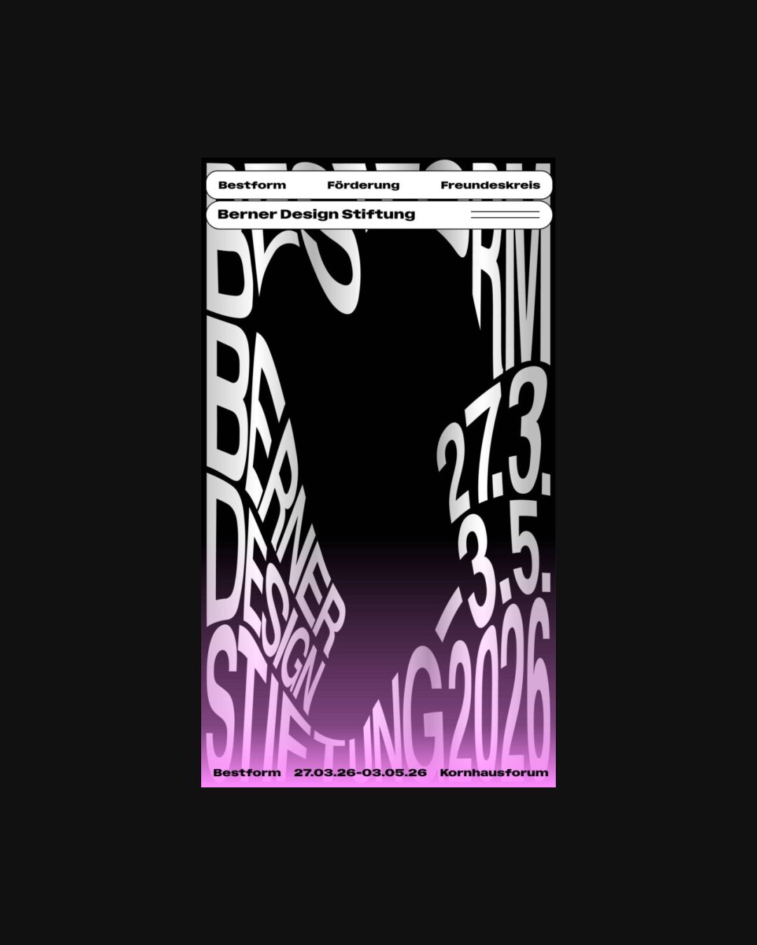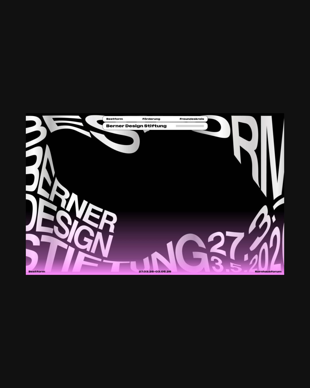 1329 bernerdesignstiftung.ch Design, Big Title, Big Typography, Bold, Brutalist, Gradient, Large Scale, Layered, Light, Sans Serif Typeface, Scaling, Shapes, Black, White, Switzerland. Design: Kornhaus Atelier. Development: Roger Burkhard. (02-01-2026) ←Close