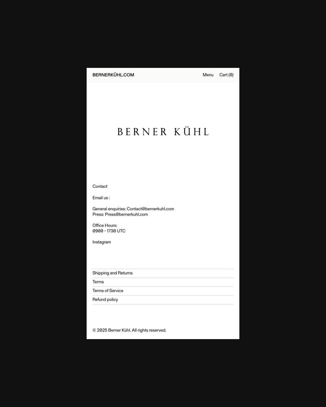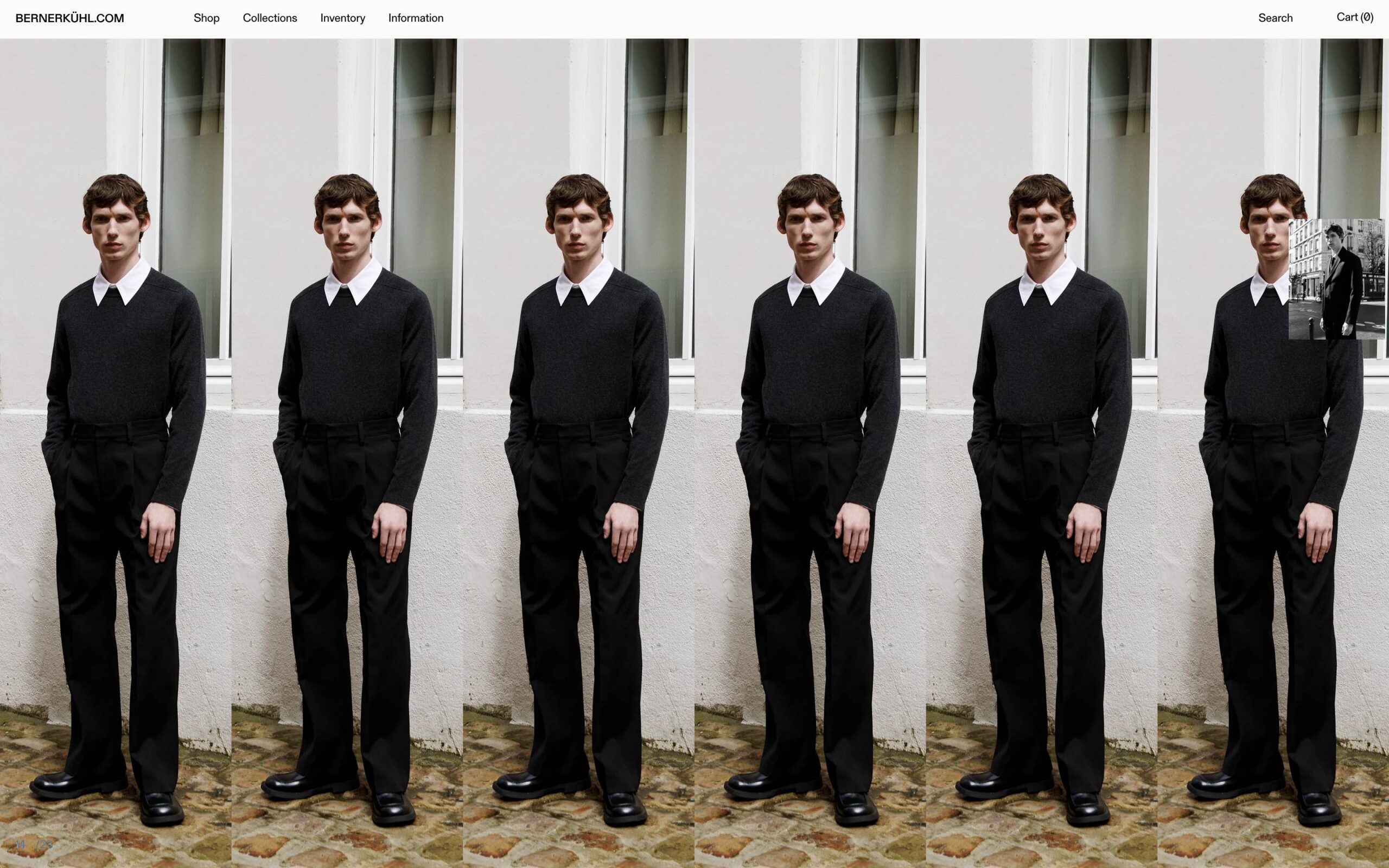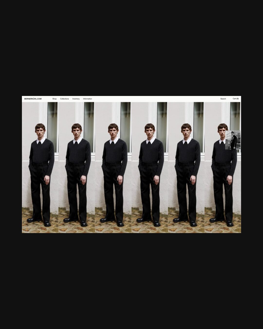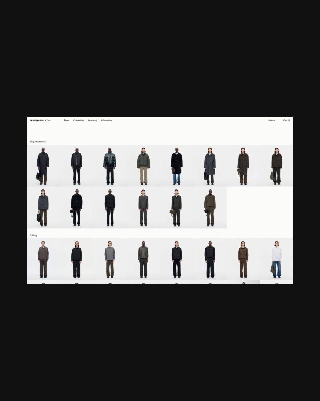 0512 bernerkuhl.com Fashion, Big Images, Clean, E-commerce, Grid, Large Scale, Light, Minimal, Simple, Small Typography, Black, Silver, White, Denmark. Design: Harrison Gyde. Development: Open Statement. (17-10-2022) ←Close
