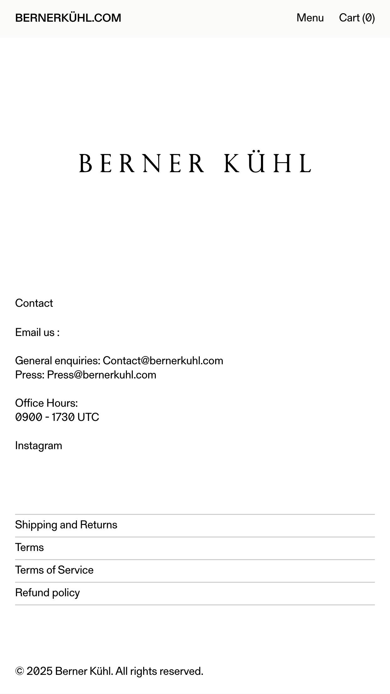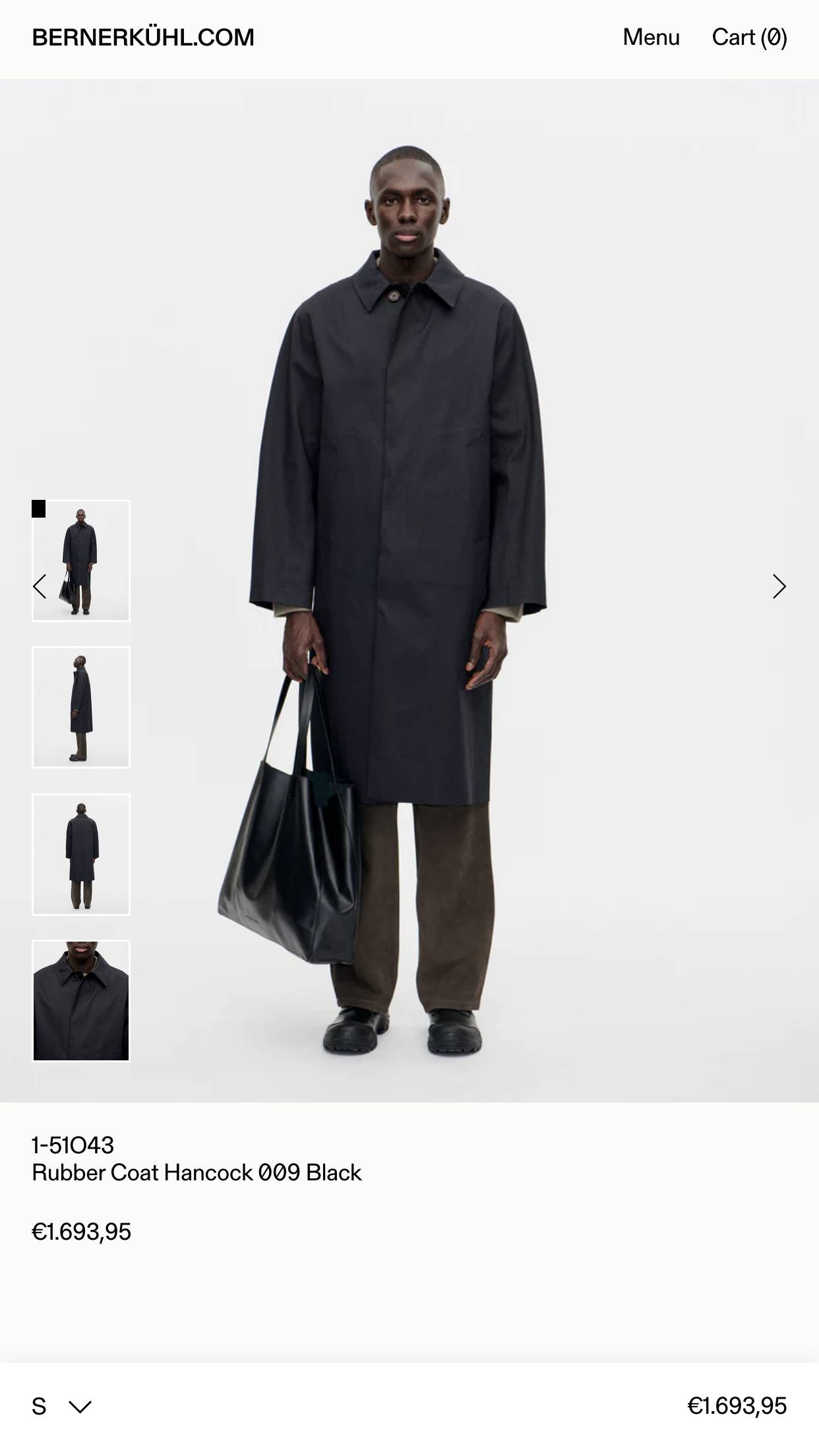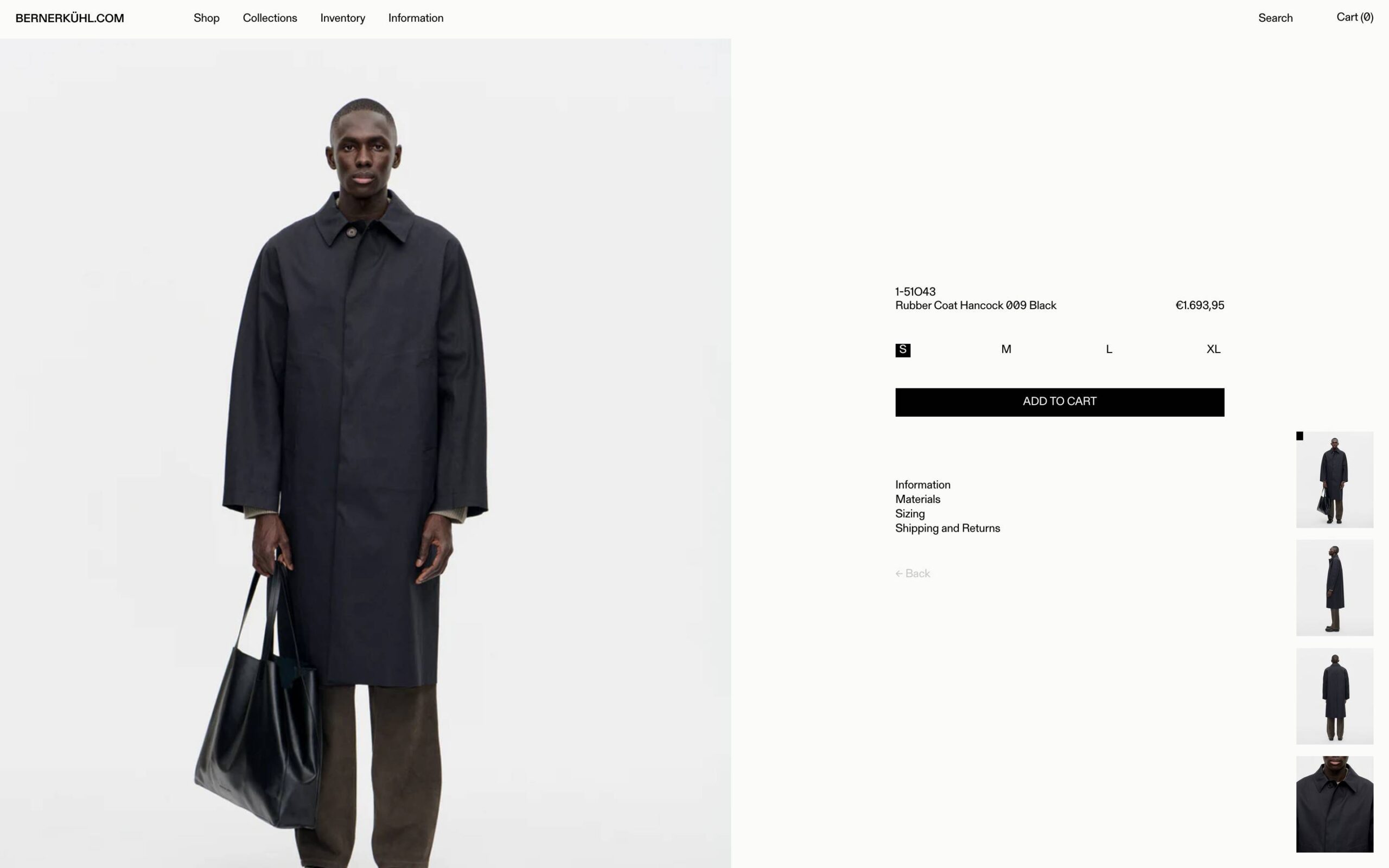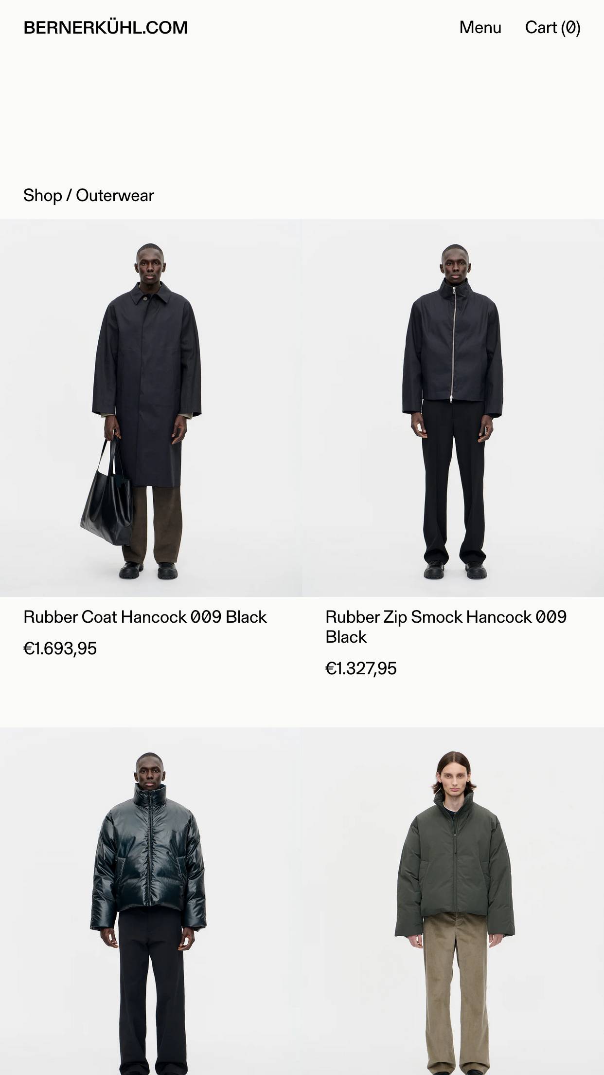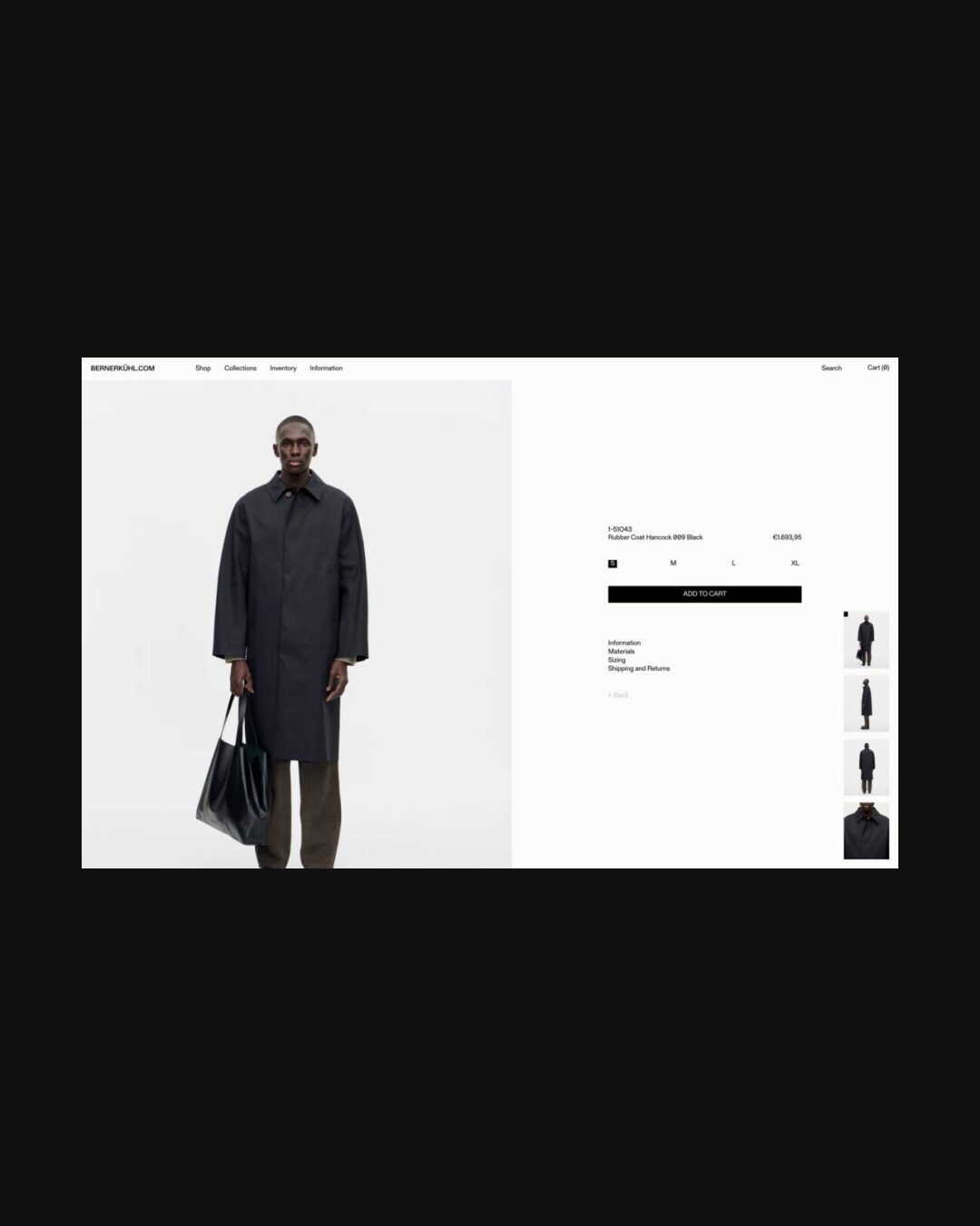 0512 bernerkuhl.com Fashion, Big Images, Clean, E-commerce, Grid, Large Scale, Light, Minimal, Simple, Small Typography, Black, Silver, White, Denmark. Design: Harrison Gyde. Development: Open Statement. (17-10-2022) ←Close