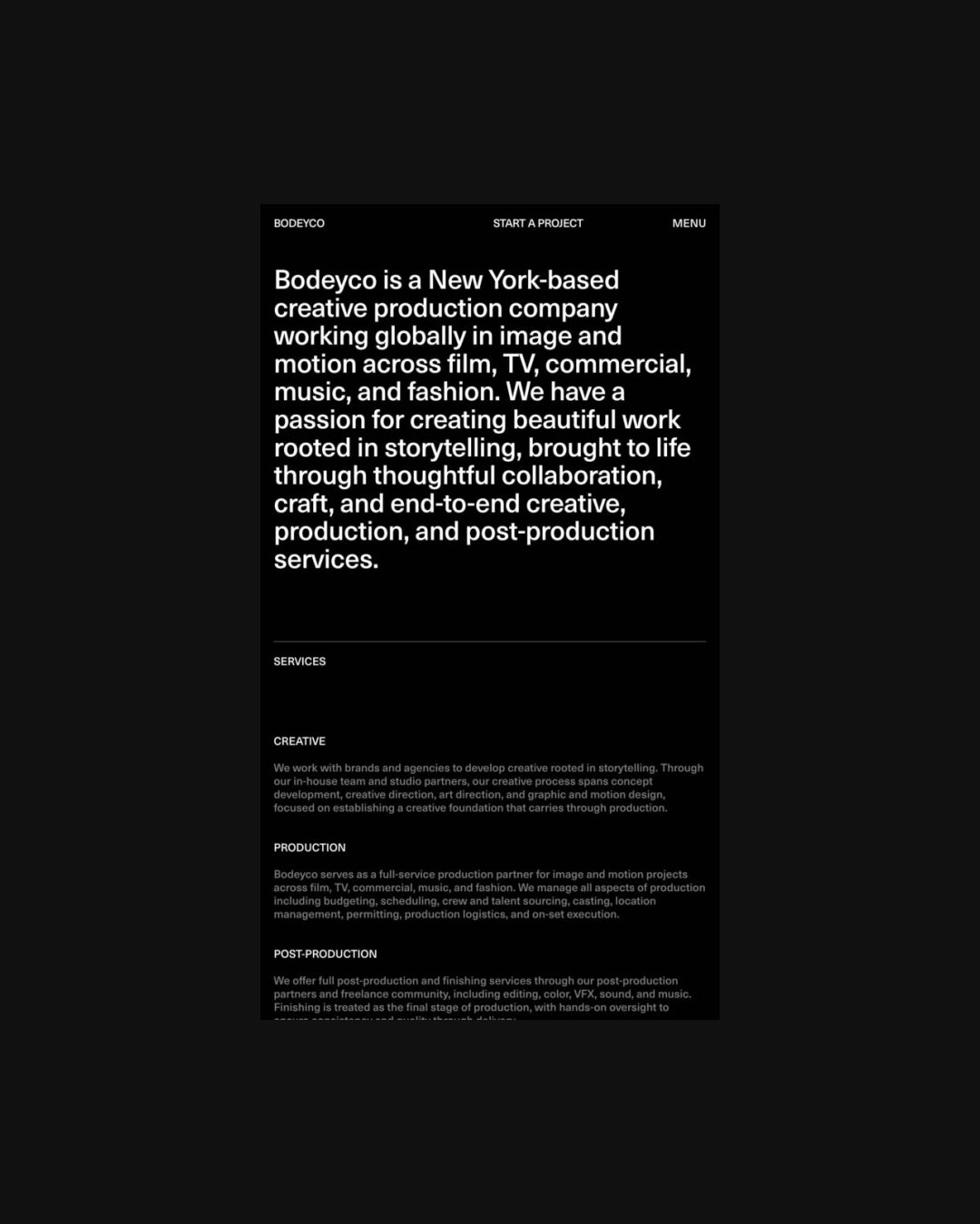 1352 bodeyco.com Production, Bright, Clean, Grid, Large Scale, Light, List, Minimal, Overlay Containers, Sans Serif Typeface, Simple, Small Typography, Technical, Video, White Space, Black, USA. Design: NSLT Studio. Development: NSLT Studio. (15-01-2026) ←Close