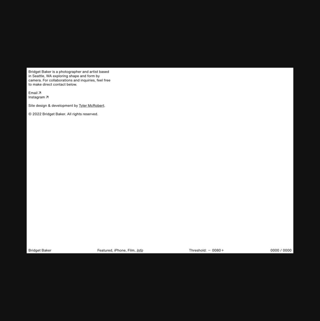 0507 bridget.pictures Photography, Clean, Cursor Follow, Custom Cursor, Large Scale, Light, Scroll Events, Coffee, White, USA. Design: Tyler McRobert. Development: Tyler McRobert. (21-09-2022) ←Close