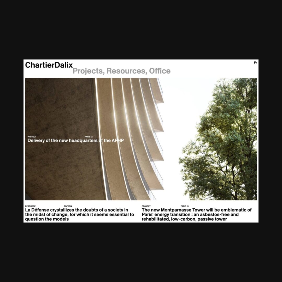 0484 chartier-dalix.com Architecture, Big Images, Big Title, Big Typography, Bold, Clean, Creative Layout, Grid, Large Scale, Light, White Space, Black, White, France. Design: Valentine Thébaut, Zoo. Development: Julian Garnier. (04-08-2022) ←Close
