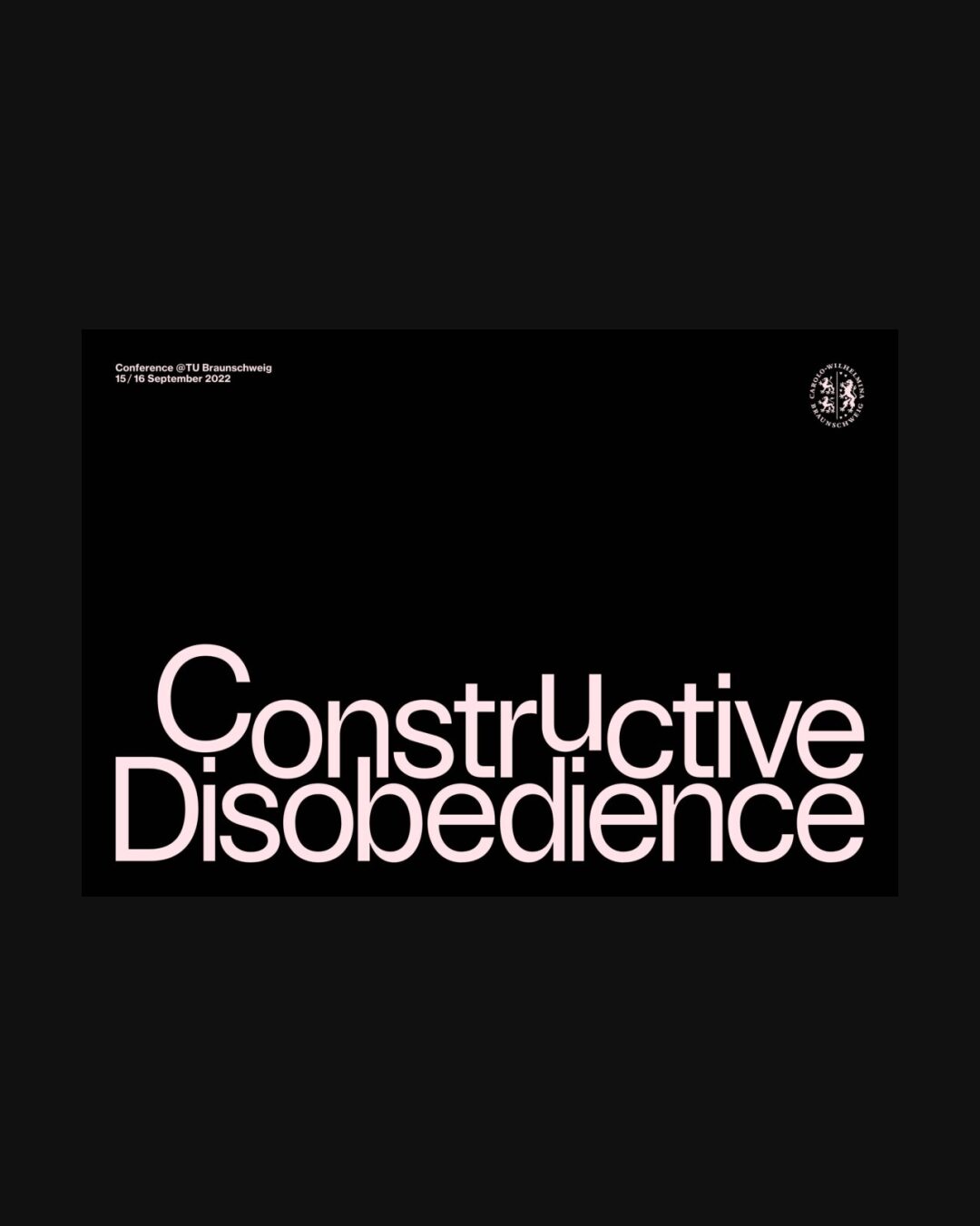 0591 constructive-disobedience.com Event, Big Title, Bold, Dark, Duo-tone, International Style, Large Scale, Typographic, Black, Pink, Germany. Design: Happy Little Accidents. Development: Patrick Heypeter. (18-02-2023) ←Close