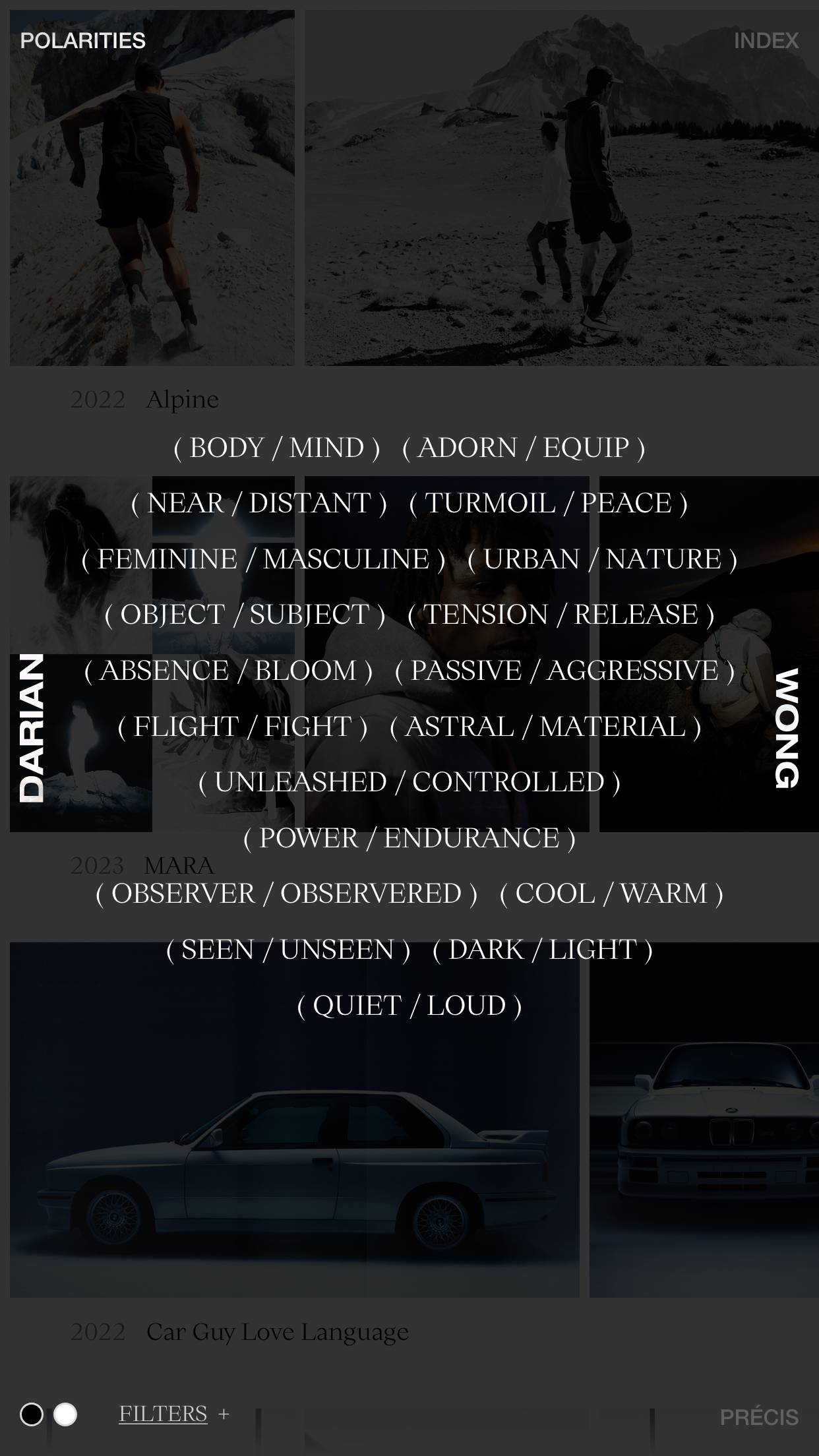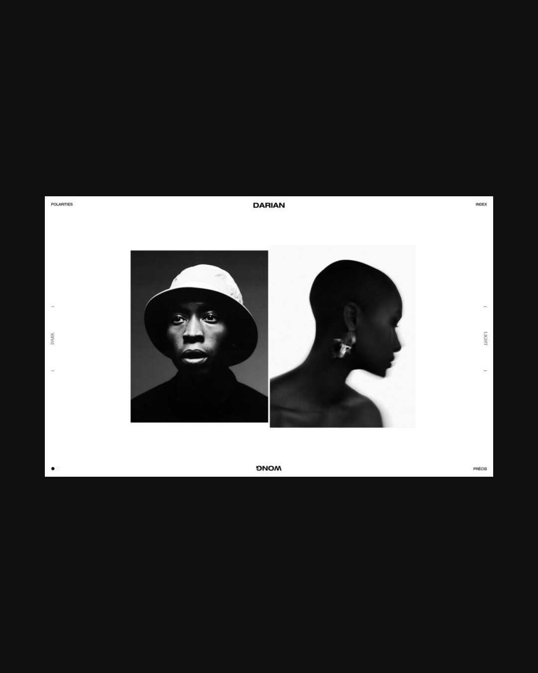 1352 darianwong.com Photography, Bright, Dark, Grid, Horizontal Scroll, Large Scale, Light, Mixed Style Typefaces, Overlay Containers, Rotated Text, Slider, White Space, Black, White, USA. Design: Newkid. Development: XKM Studio. (31-01-2026) ←Close