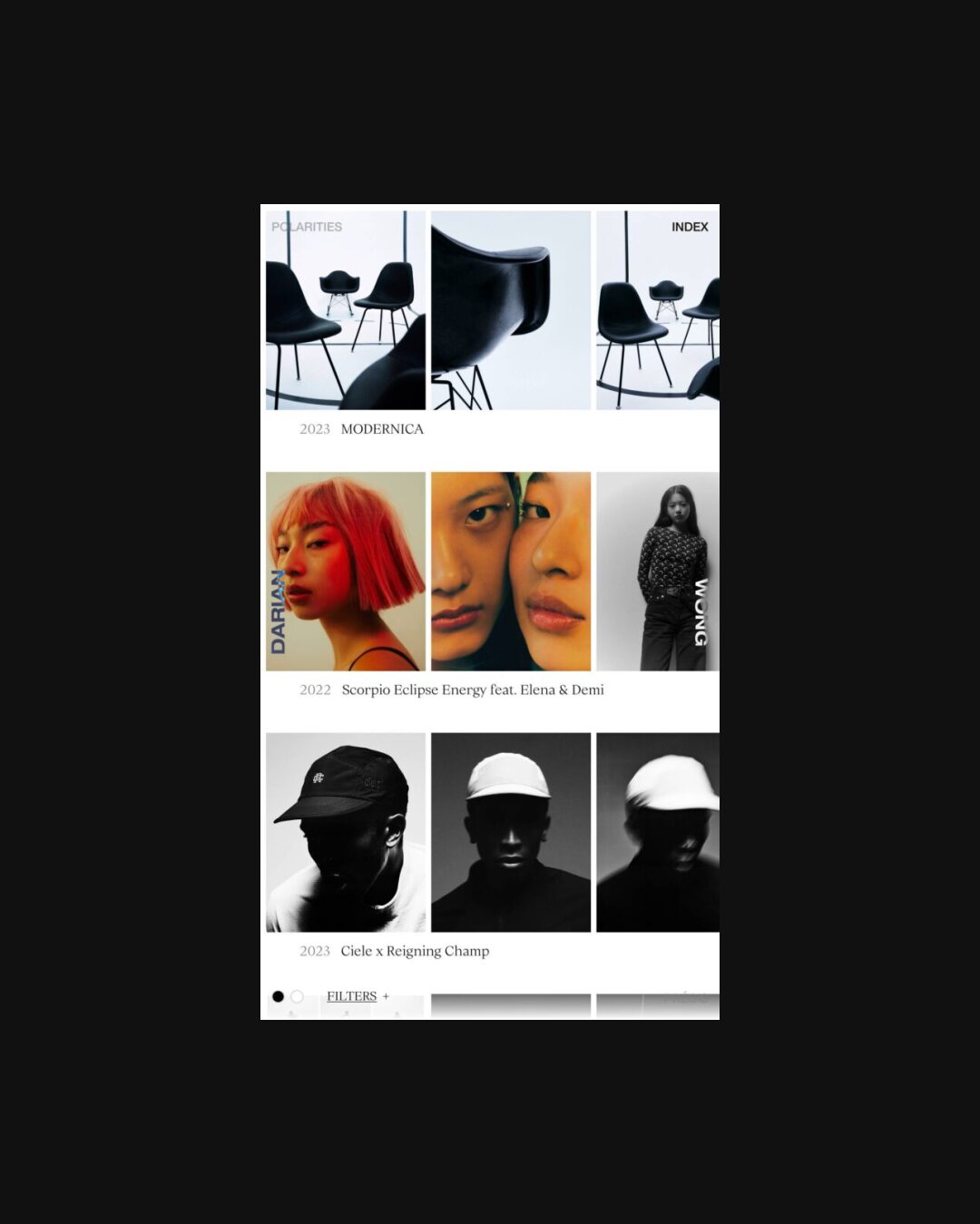 #3D #Animations #Ascii #Asymmetrical Grid #Audio #Bauhaus #Big Images #Big Title #Big Typography #Black & White #Blocks #Blur #Bold #Bright #Brutalist #Buttons #Camera Tracking #Clean #Clock #Collage #Collapsing containers #Colorful #Creative Layout #Cursor Follow #Custom Cursor #Custom Scroll #Dadaist #Dark #Draggable Elements #Duo-tone #E-commerce #Editorial #Forms #Gradient #Grainy #Gray #Grid #Gritty #Halftone #Holding Page #Horizontal Scroll #Hover Events #Illustrations #Industrial #International Style #Large Scale #Layered #Light #List #Lo-FI #Lowercase #Map #Marquee #Mini Site #Minimal #Mixed Style Typefaces #Mode Switch #Mono Typeface #Monotone #Motion #Multicolor #Newspaper #One Page #Overlay Containers #Page Transitions #Parallax #Pattern #Playful #Retro #Rotated Text #Sans Serif Typeface #Scaling #Scroll Events #Scroll Position Animation #Scroll Snap #Serif Typeface #Shapes #Simple #Slider #Small Typography #Split Scroll #Sticky Elements #Stretched Text #Table #Technical #Technologic #Text Highlight #Text Only #Thin #Timeline #Typographic #Uppercase #Variable Title #Vertical Text #Video #White Space #Y Scroll