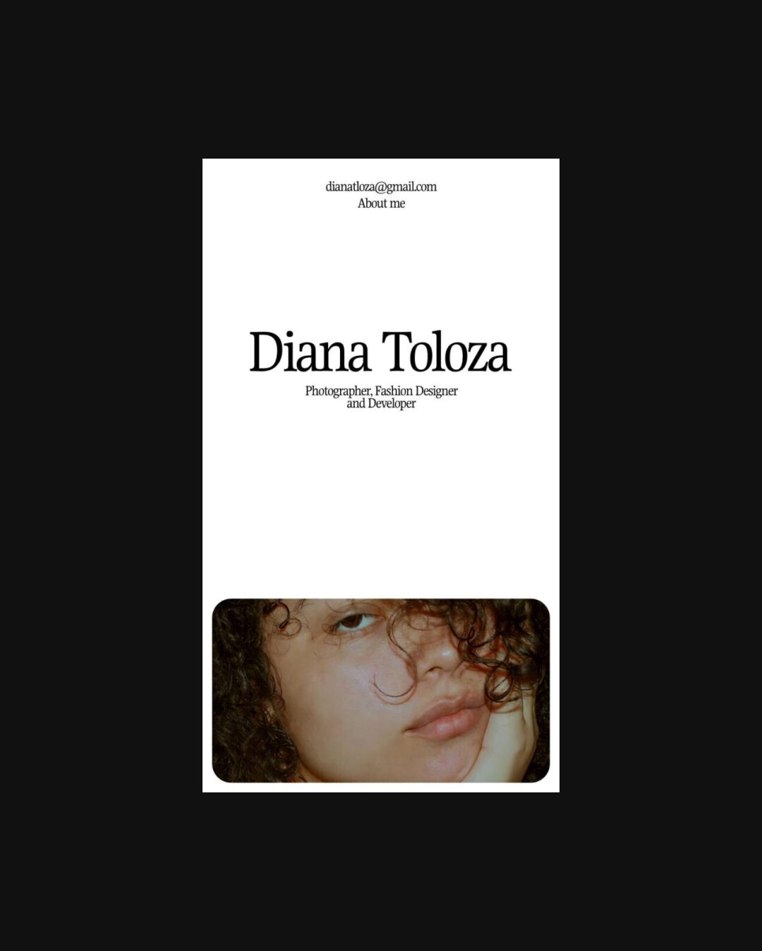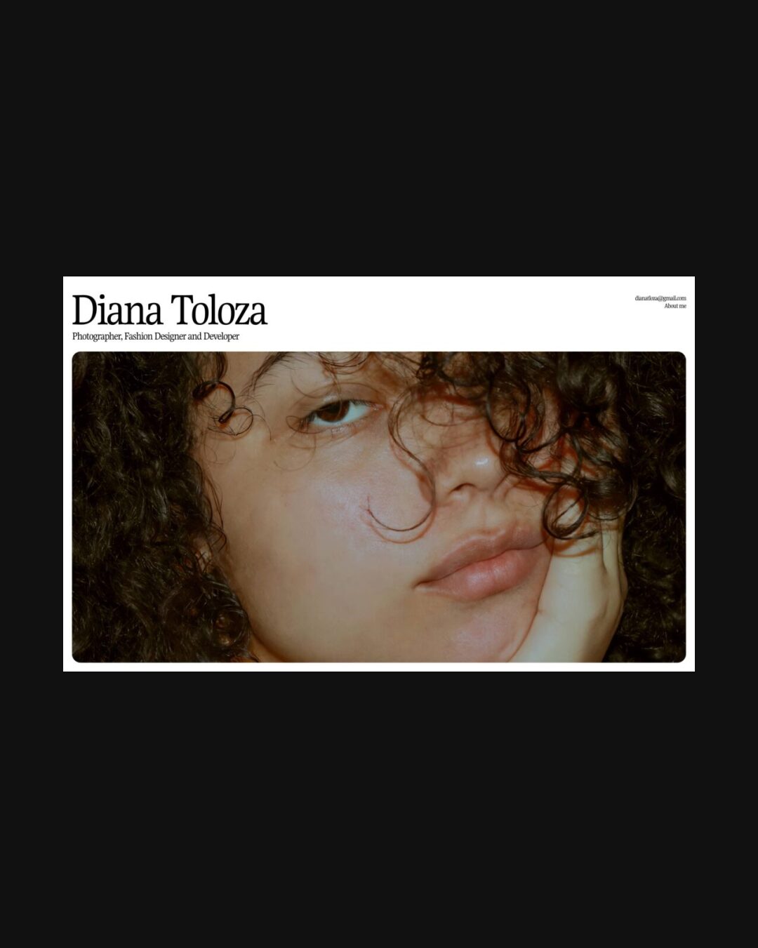 0990 dianatoloza.co Photography, Animations, Big Title, Clean, Large Scale, Light, Scroll Events, Serif Typeface, White Space, Black, White, Colombia. Design: Jorge Toloza. Development: Diana Toloza. (19-10-2024) ←Close
