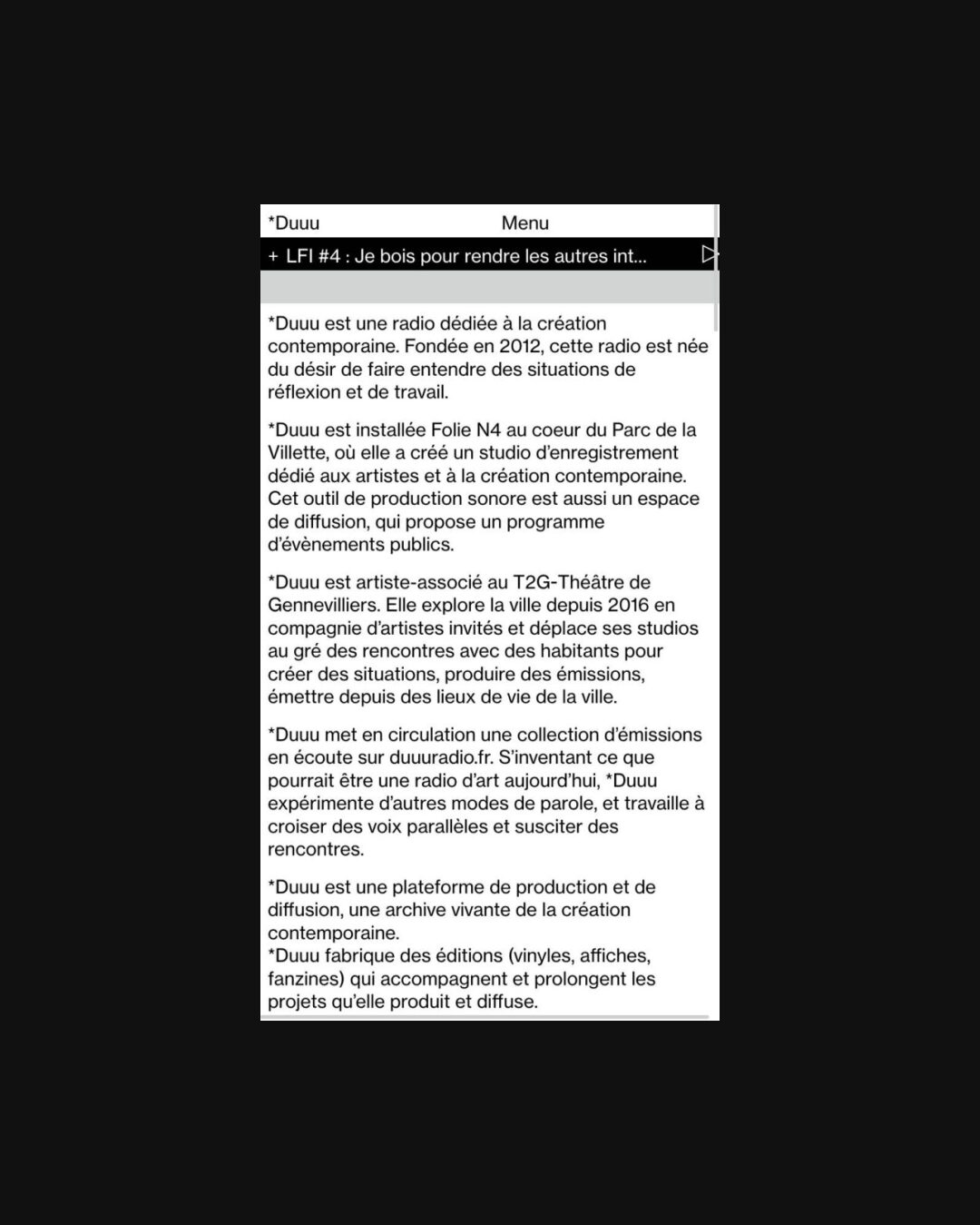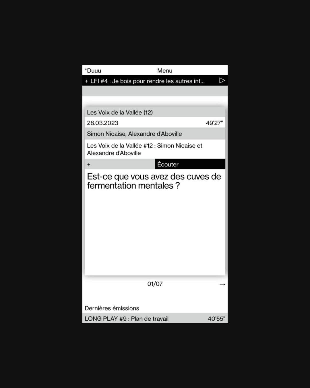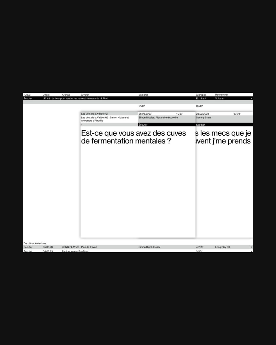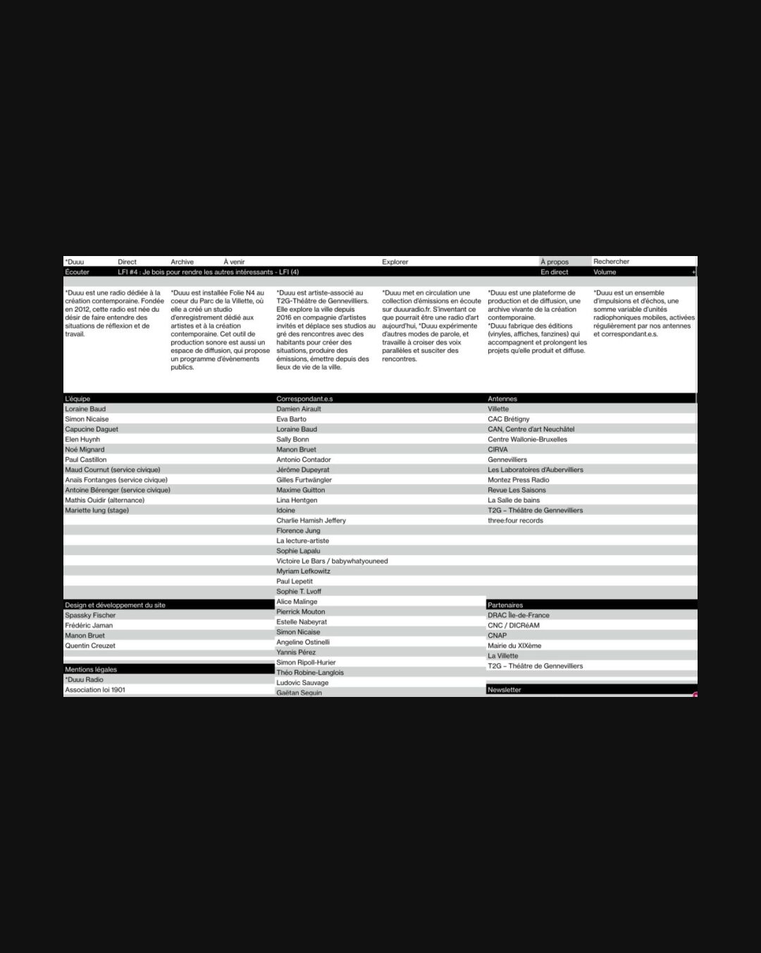 0230 duuuradio.fr Radio, Black & White, Gray, Grid, Light, Small Typography, Typographic, Silver, White, France. Design: Frédéric Jaman, Spassky Fischer. Development: Quentin Creuzet. (09-10-2020) ←Close