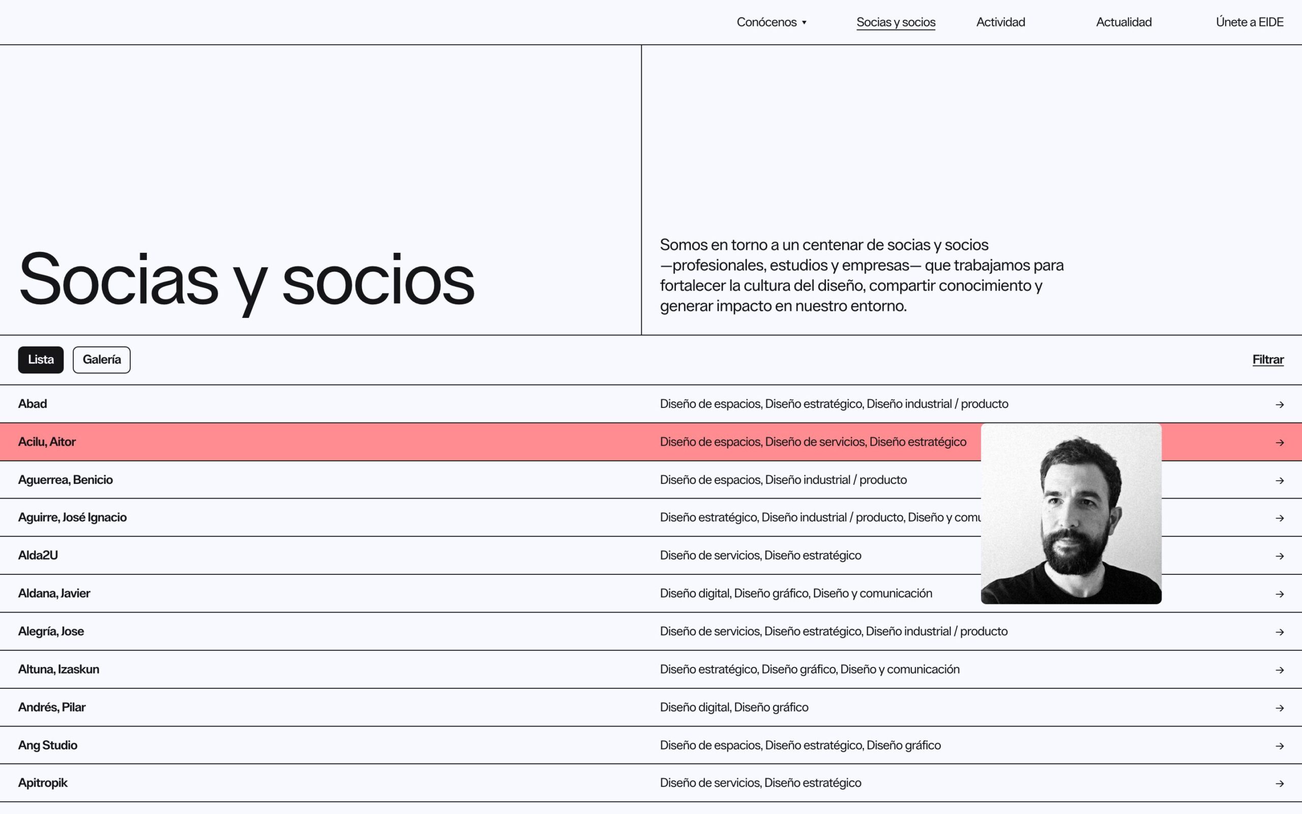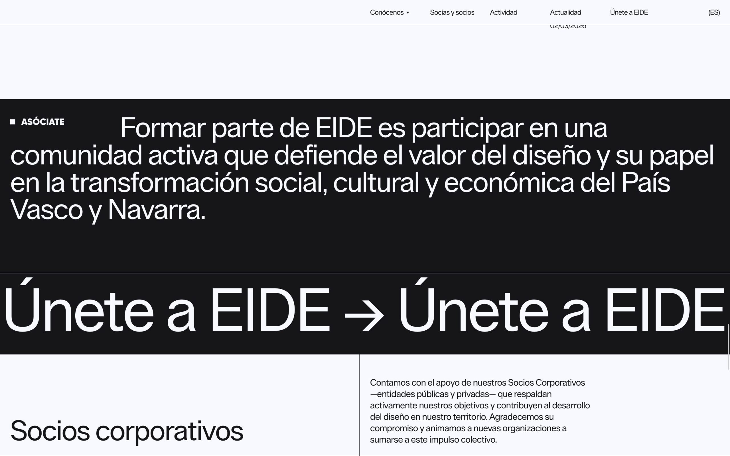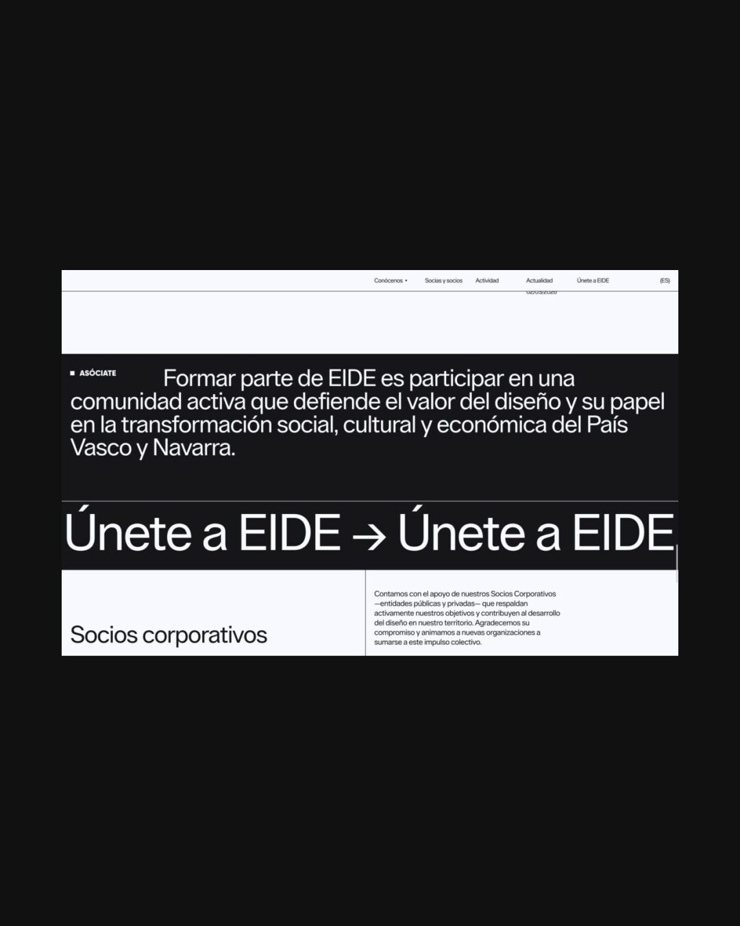 1333 eidedesign.eus Association, Big Title, Big Typography, Clean, Editorial, Grid, Large Scale, Light, Sans Serif Typeface, Scroll Events, Table, White Space, Black, White, Spain. Design: BANILA Studio. Development: BANILA Studio. (21-04-2026) ←Close