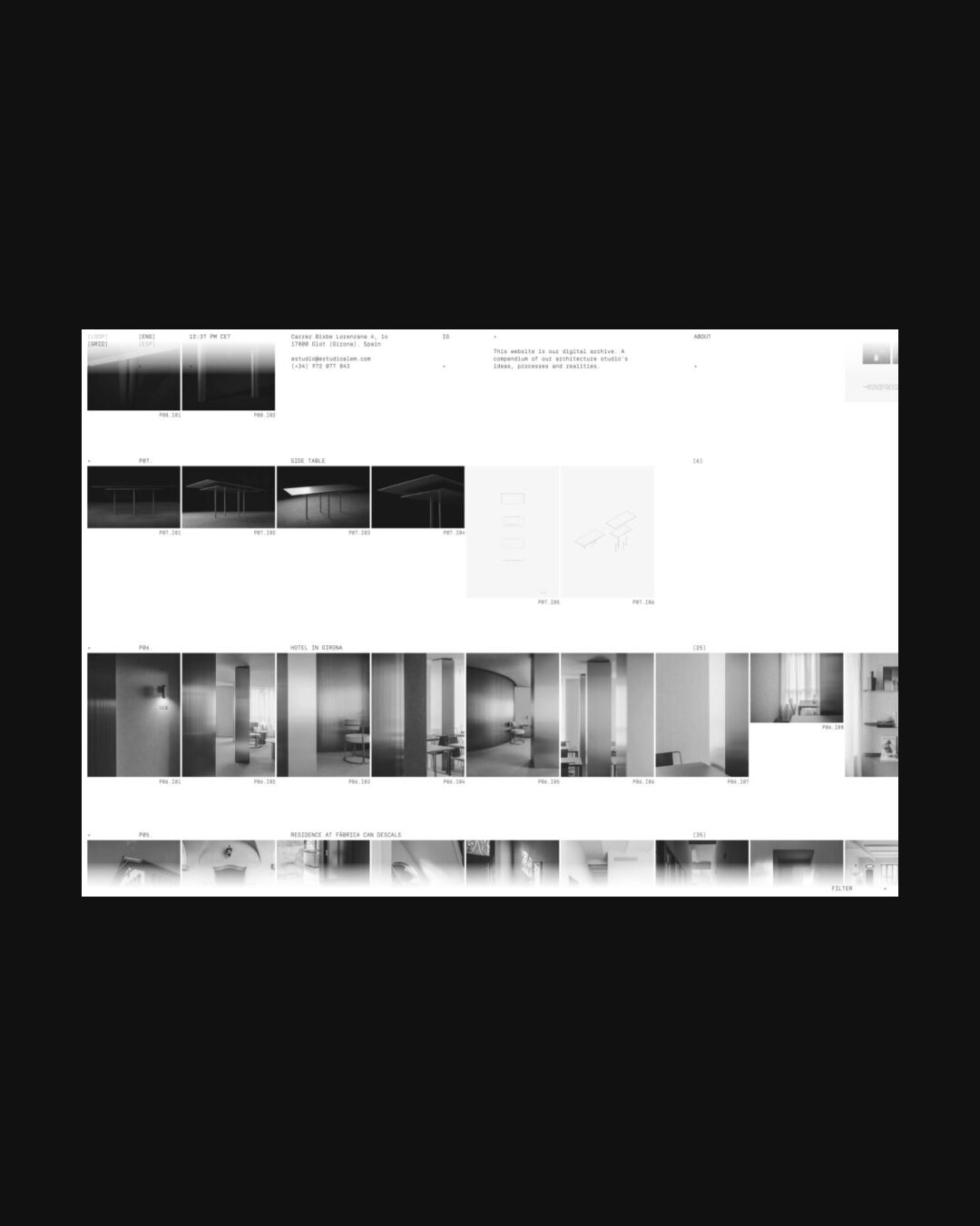 0617 estudioalem.com Architecture, Animations, Black & White, Clean, Grid, Large Scale, Light, Simple, Small Typography, Gray, White, Spain. Design: Querida. Development: APN Works. (07-04-2023) ←Close