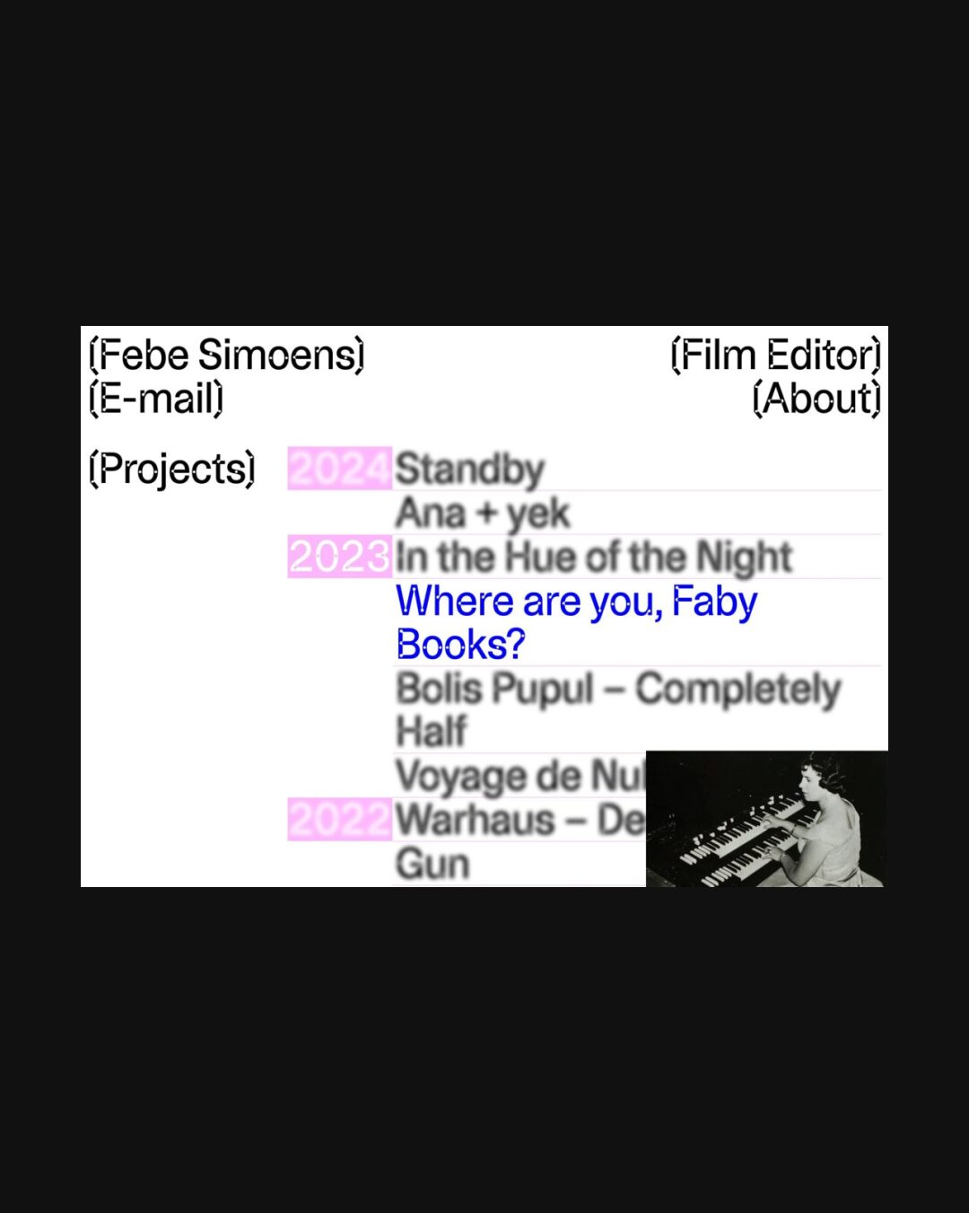 0861 febesimoens.be Editor, Big Typography, Brutalist, Collapsing containers, Large Scale, Overlay Containers, Typographic, Black, White, Belgium. Design: Mathieu Serruys. Development: Mathieu Serruys. (16-04-2024) ←Close