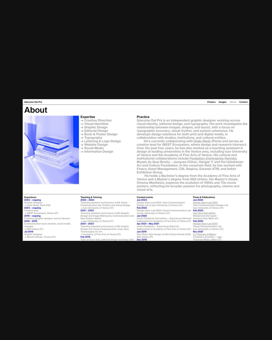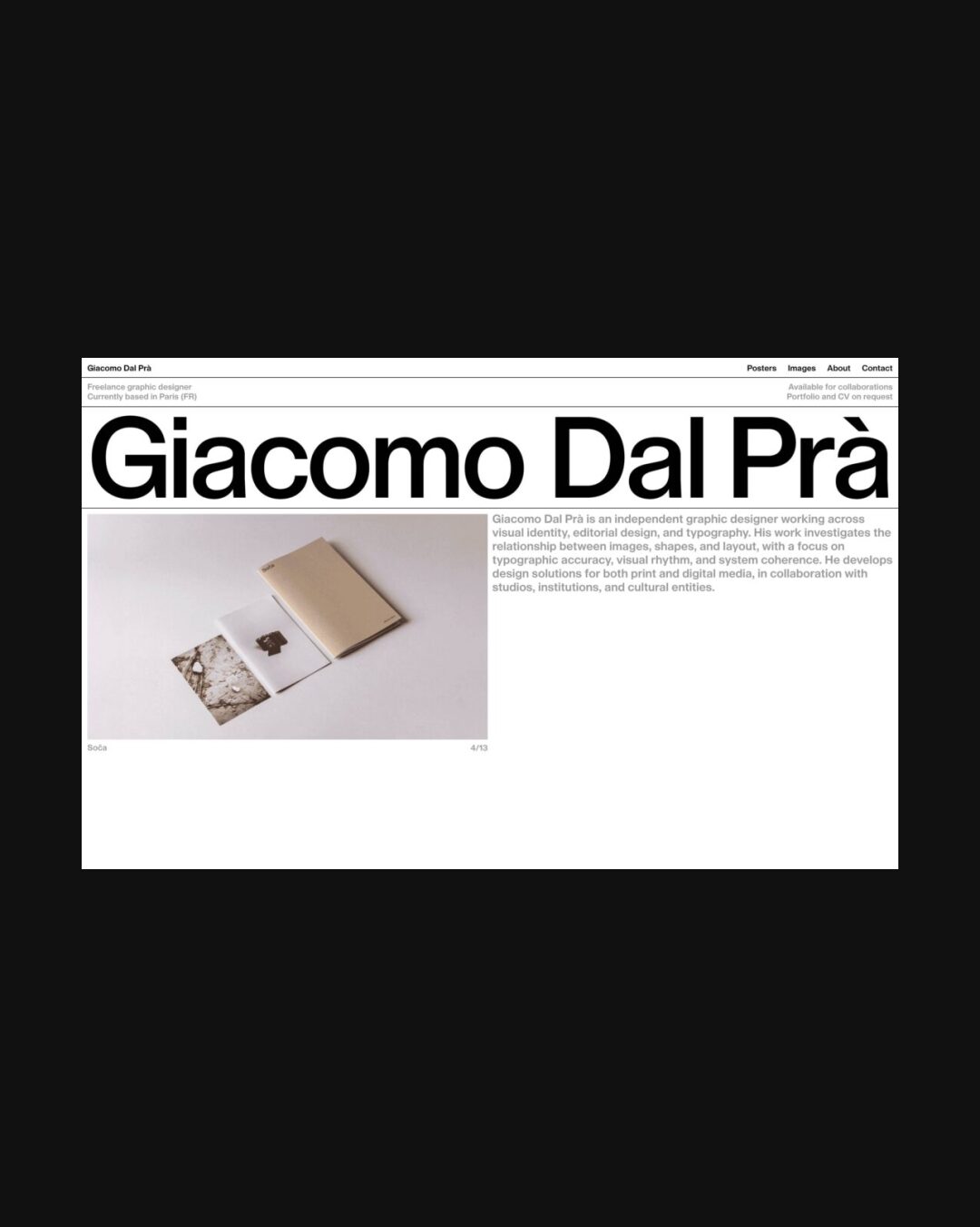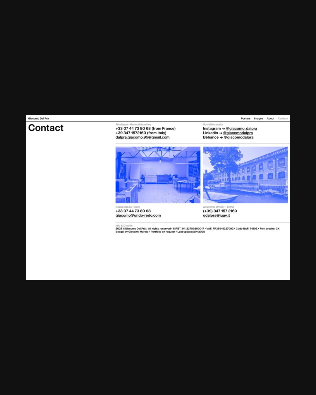 1150 giacomodalpra.com Graphic Design, Big Title, Bold, Clean, International Style, Large Scale, Light, Sans Serif Typeface, Silver, White, France. Design: Giacomo Dal Prà. Development: Giacomo Dal Prà. (26-08-2025) ←Close