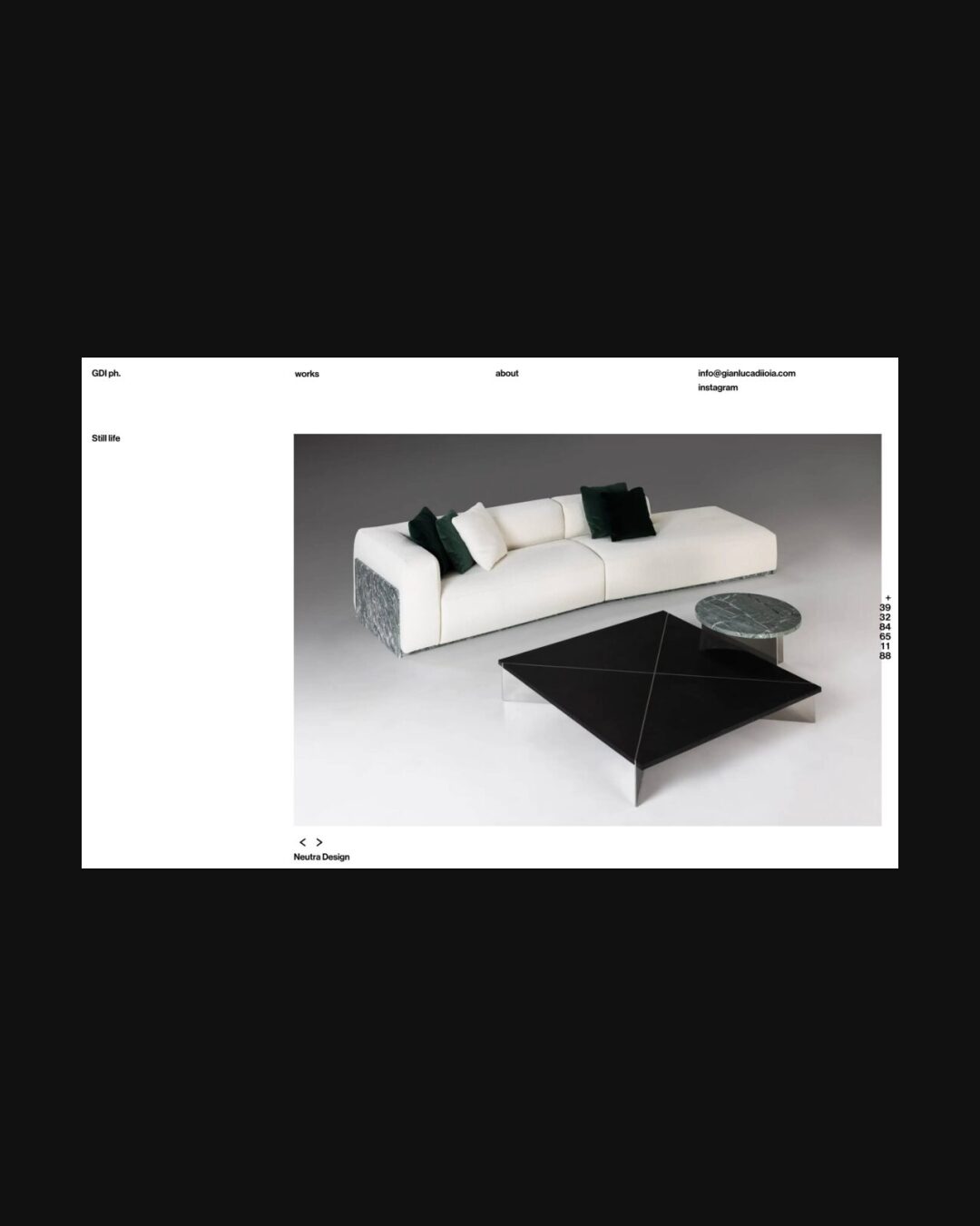 0882 gianlucadiioia.com Photography, Asymmetrical Grid, Clean, Large Scale, Light, Minimal, Sans Serif Typeface, Simple, Small Typography, White Space, Silver, White, Italy. Design: Giallo Studio, Paola Bombelli. Development: Giallo Studio. (06-09-2024) ←Close