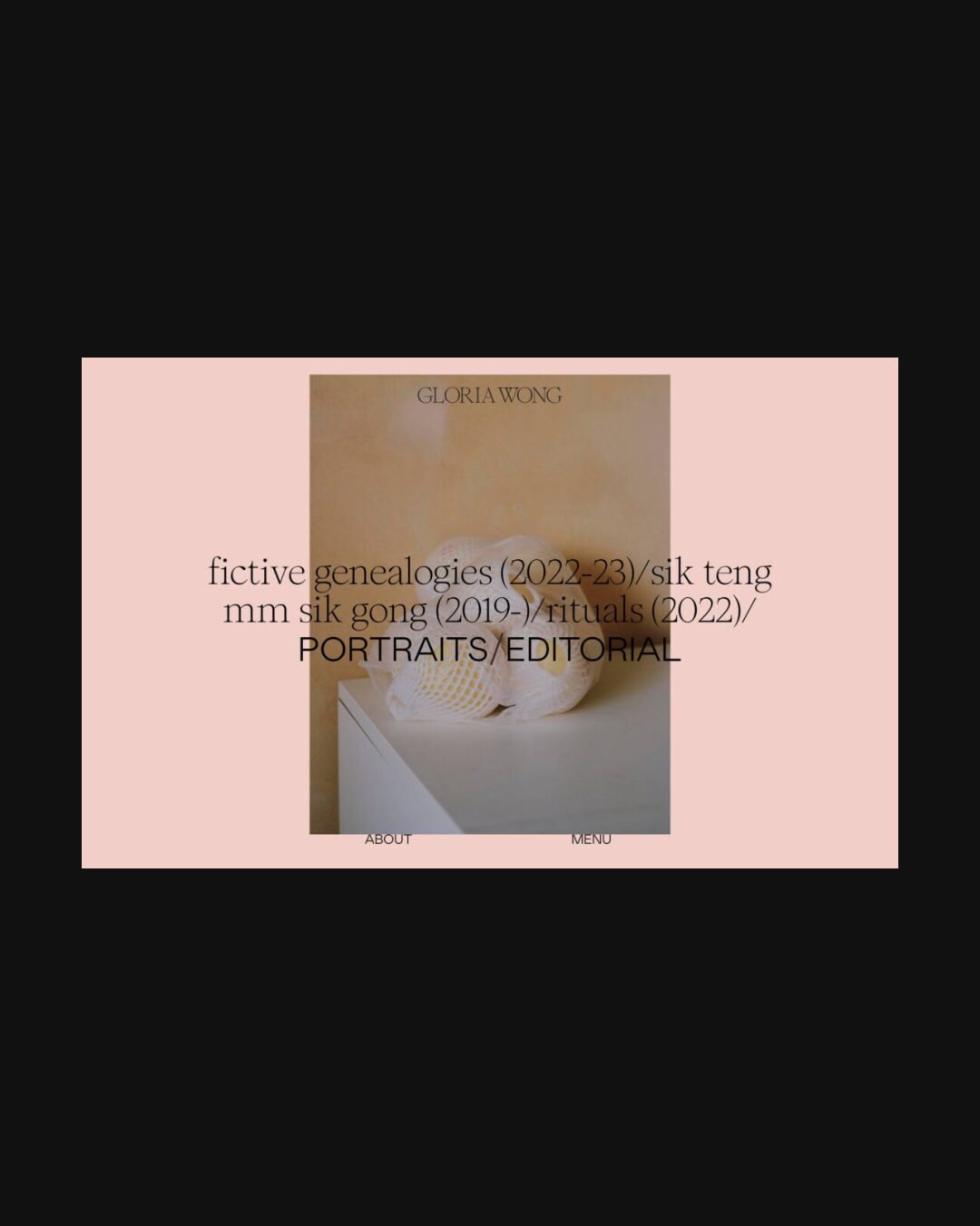 1071 gloriawong.co Photography, Asymmetrical Grid, Big Title, Big Typography, Clean, Creative Layout, Large Scale, Light, Serif Typeface, White Space, Silver, White, Canada. Design: Rees Morgan. Development: Rees Morgan. (10-01-2025) ←Close