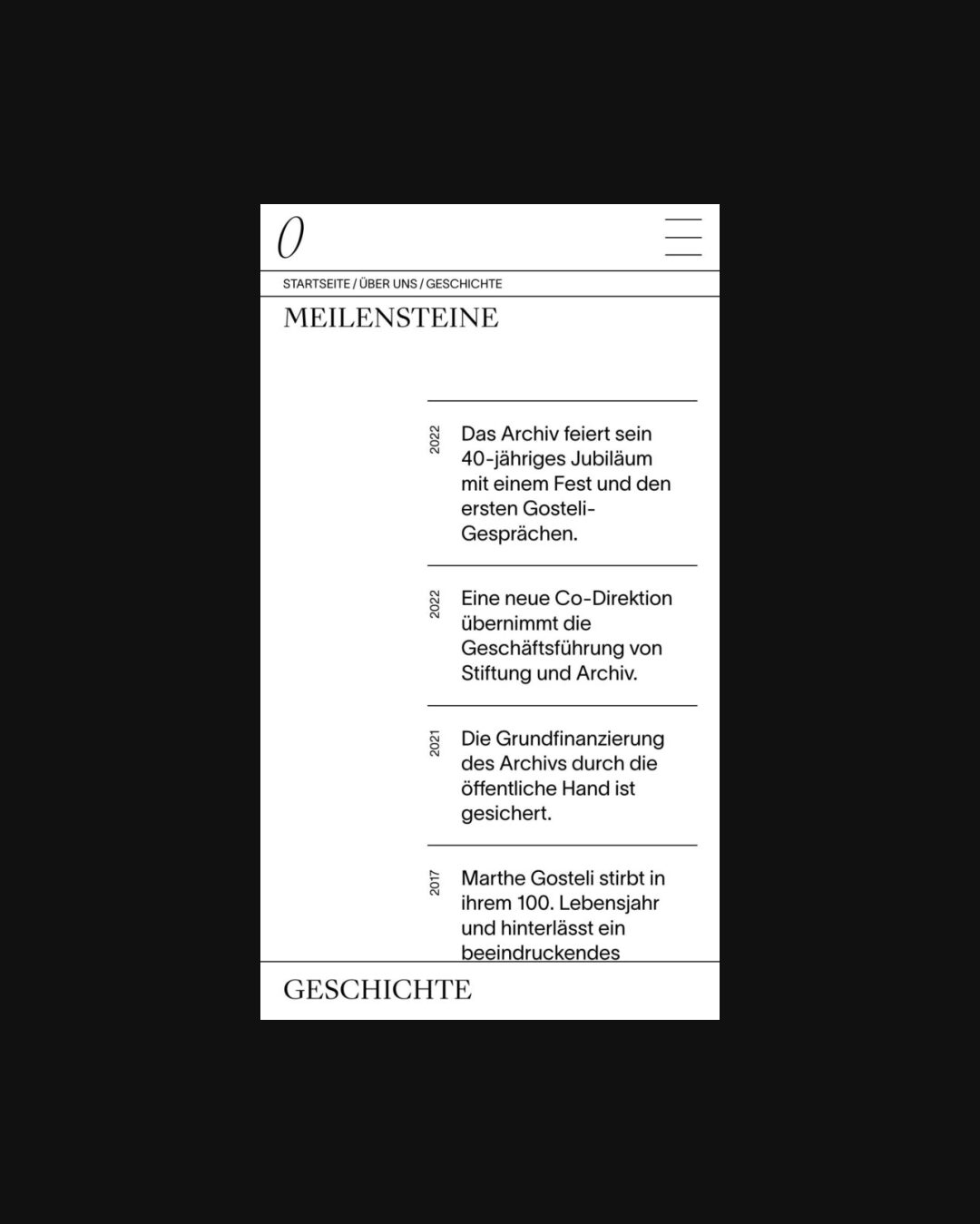 1175 gosteli-archiv.ch Archival, Big Title, Bright, Colorful, Large Scale, Light, List, Mixed Style Typefaces, Sans Serif Typeface, Serif Typeface, Lavender, White, Switzerland. Design: Studio Heyday. Development: Arillo. (20-09-2025) ←Close