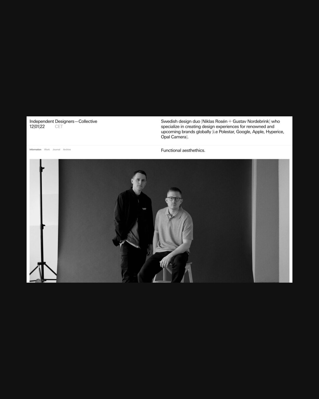 0457 id-c.se Design, Big Images, Bright, Clean, Gray, Grid, Large Scale, Light, List, Page Transitions, Sans Serif Typeface, Scroll Events, Technical, White Space, Gray, Silver, White, Sweden. Design: ID—C. Development: Harry Atkins. (04-06-2022) ←Close