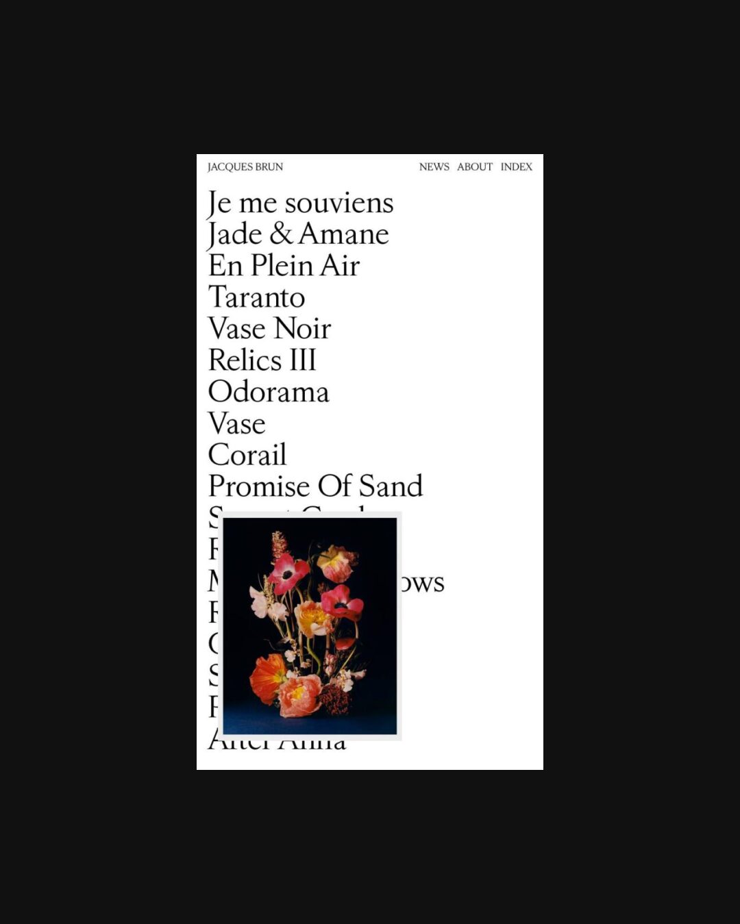0177 jacquesbrun.com Photography, Big Images, Big Typography, Creative Layout, Grid, Light, Playful, White Space, Black, France. Design: Tristan Bagot. Development: Tristan Bagot. (01-03-2019) ←Close