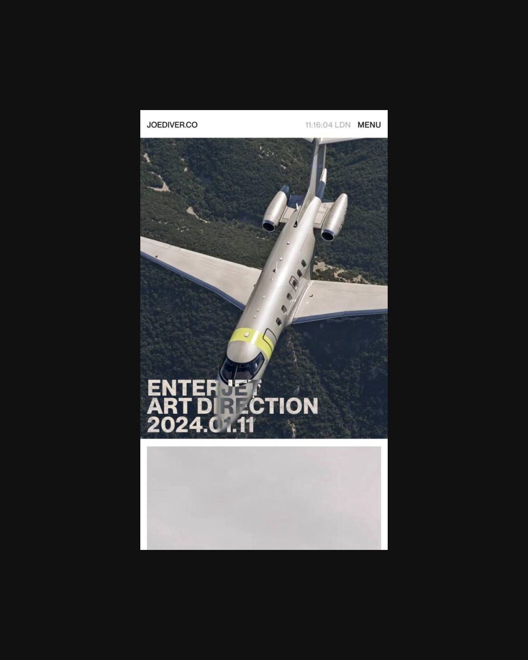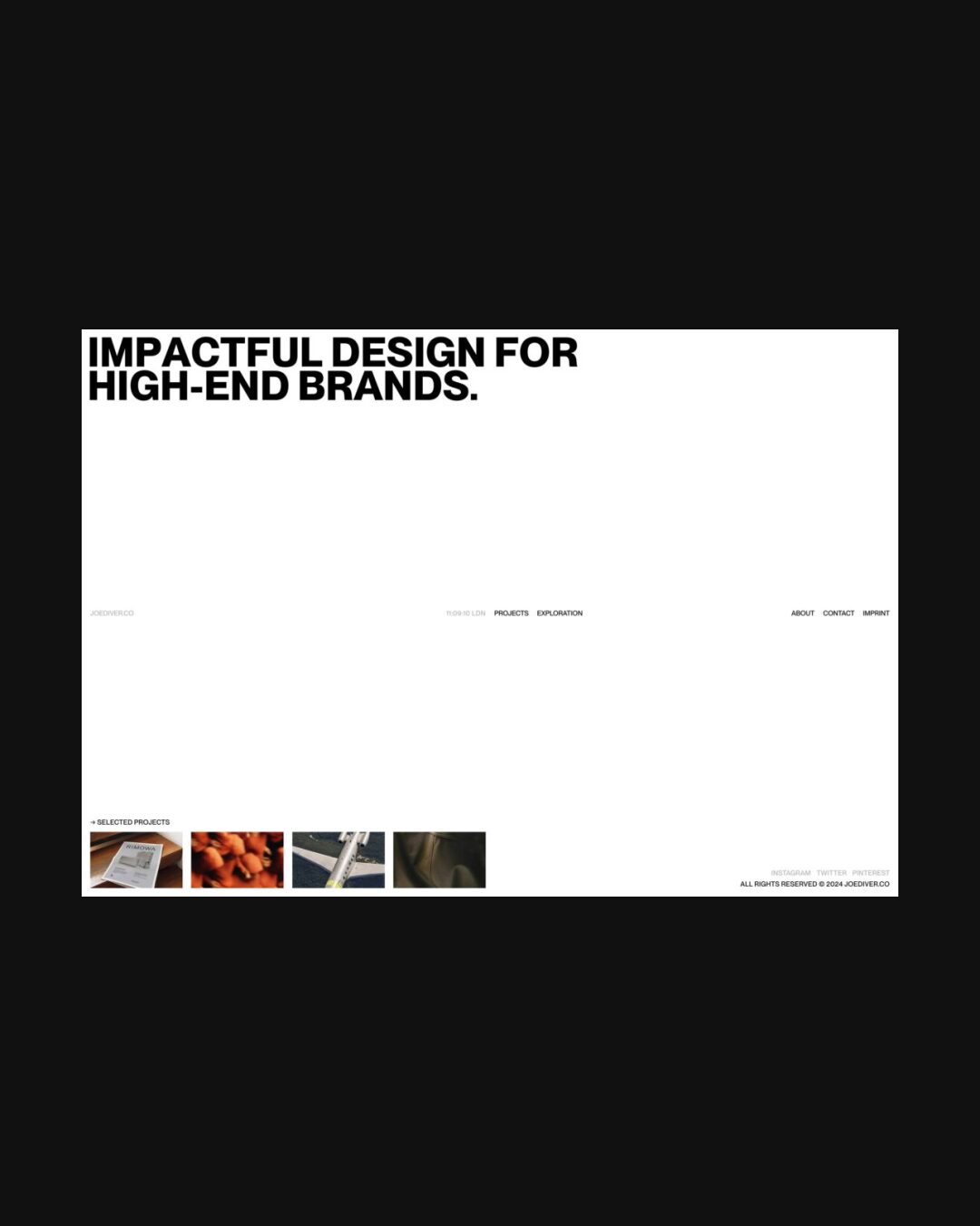 0876 joediver.co Design, Animations, Big Title, Bold, Clean, Creative Layout, Custom Scroll, Large Scale, Light, Page Transitions, Sans Serif Typeface, White Space, Black, White, United Kingdom. Design: Benito Cool, Joe Diver. Development: Benito Cool. (03-05-2024) ←Close