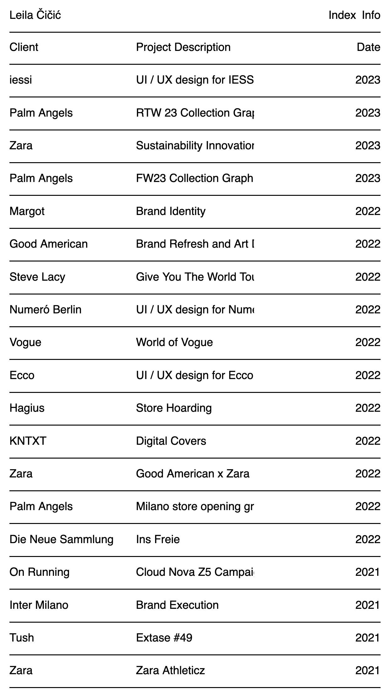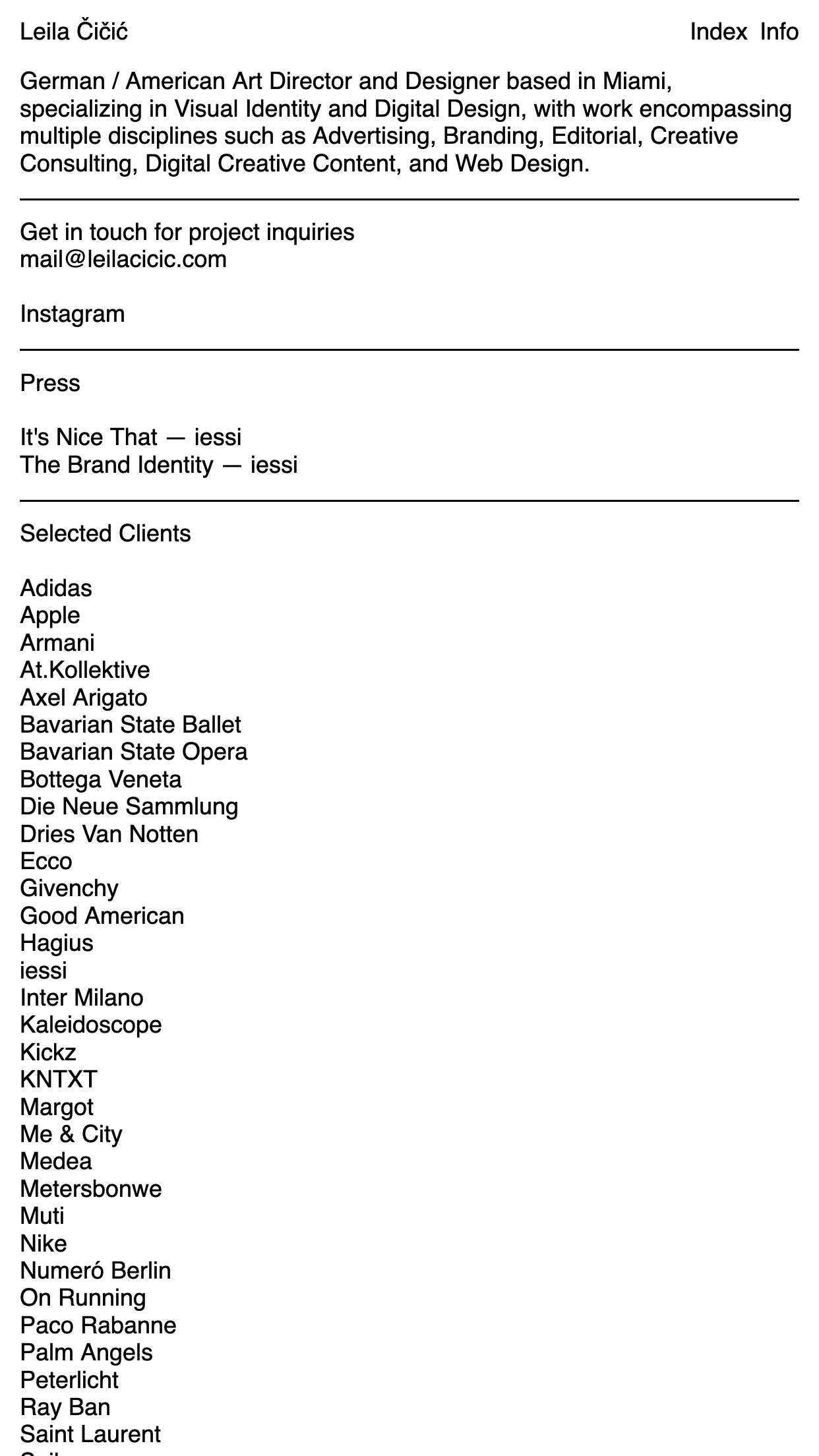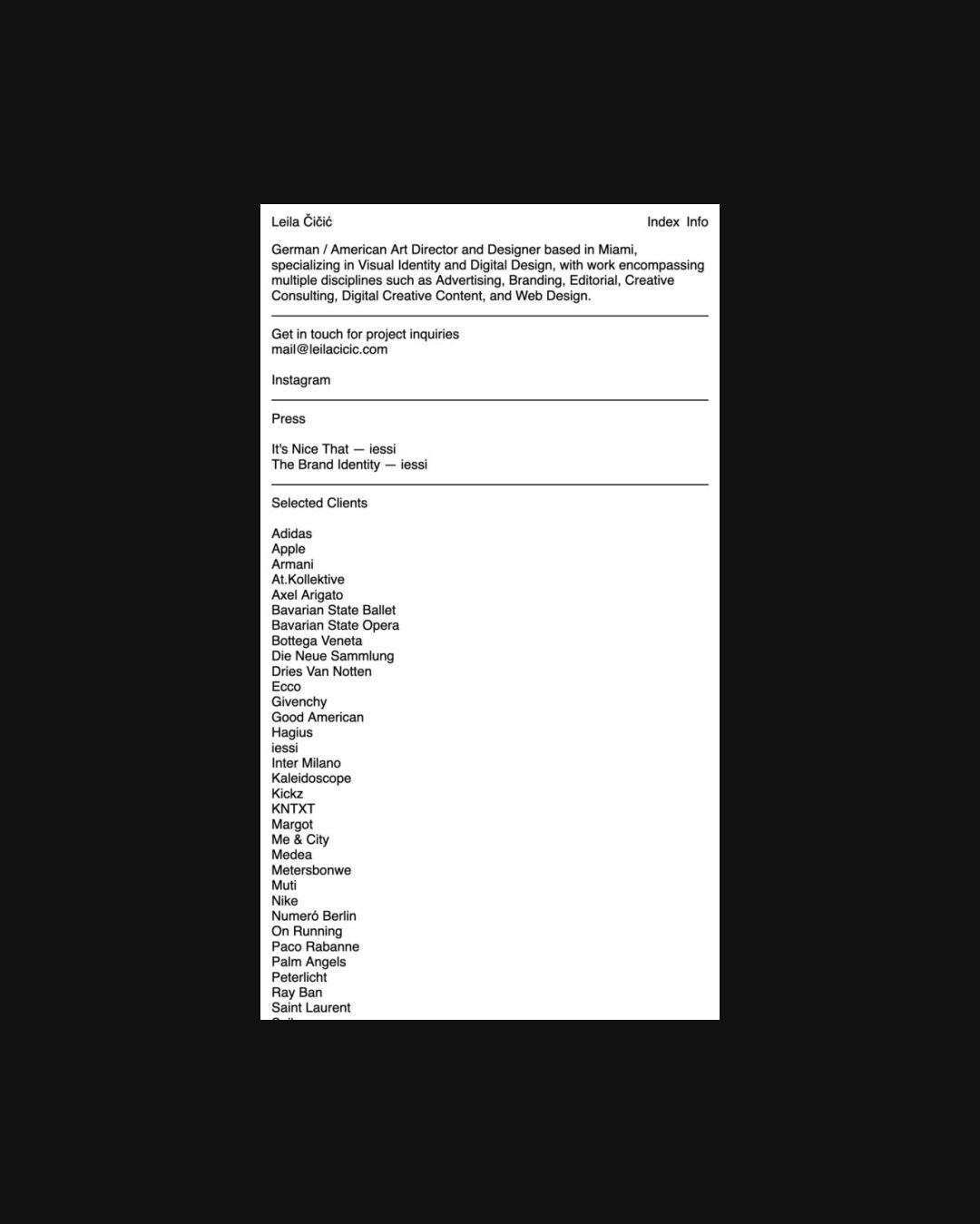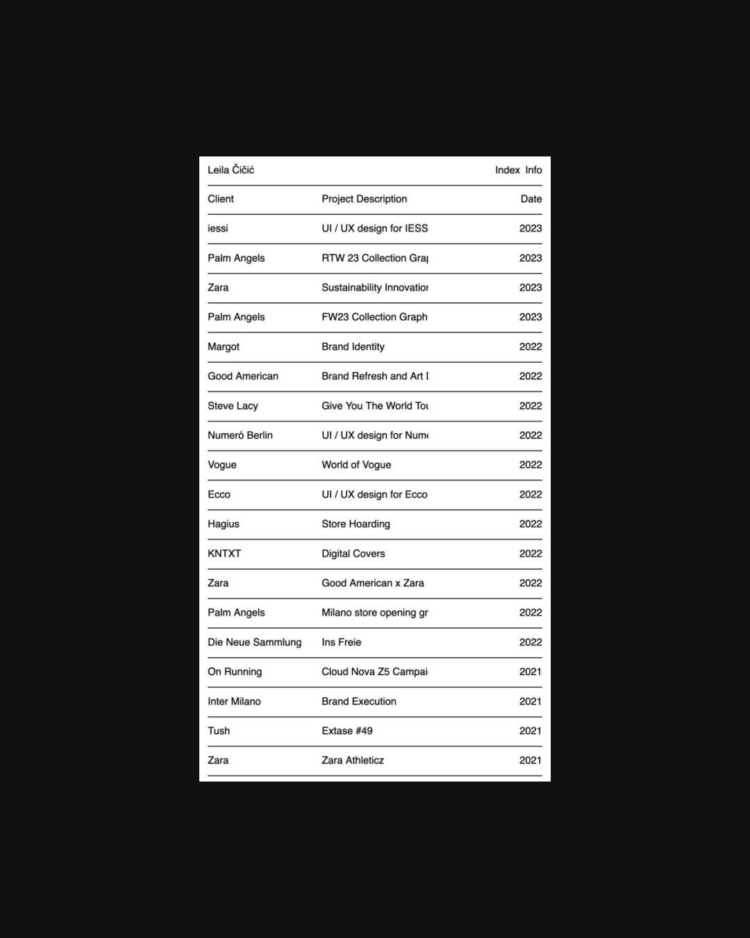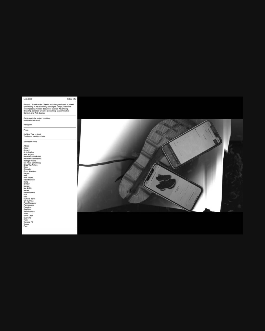 1307 leilacicic.com Design, 3D, Animations, Big Images, Clean, Grid, Large Scale, Light, Minimal, Sans Serif Typeface, Simple, Slider, Small Typography, Table, Video, Black, Gray, Peach, USA. Design: Leila Čičić. Development: Taw Vision. (14-11-2025) ←Close