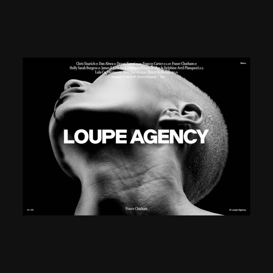 0550 loupe.agency Agency, Big Typography, Clean, International Style, Large Scale, Light, Video, Black, Silver, White, New Zealand. Design: M.Giesser. Development: Sam Morgan. (08-12-2022) ←Close