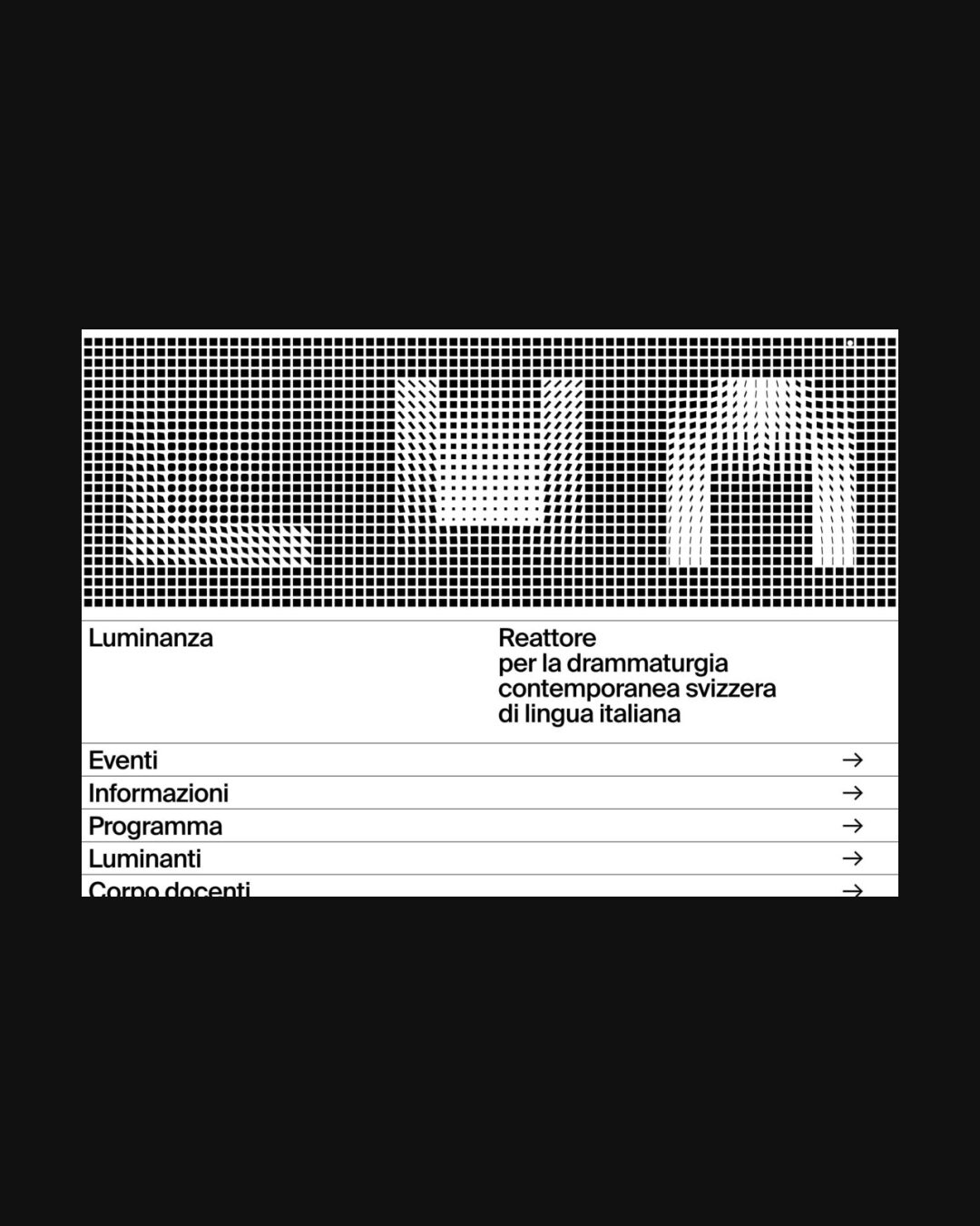 0297 luminanza.ch Education, Big Typography, Light, Typographic, Video, Black, White, Switzerland. Design: Alfio Mazzei. Development: Make Visual. (24-05-2021) ←Close