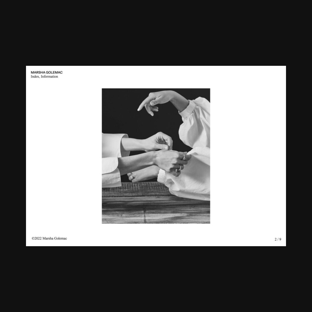 0453 marshagolemac.com Creative, Big Images, Clean, Grid, Large Scale, Light, Minimal, Simple, Typographic, White Space, Black, White, Australia. Design: M.Giesser. Development: Sam Morgan. (20-05-2022) ←Close