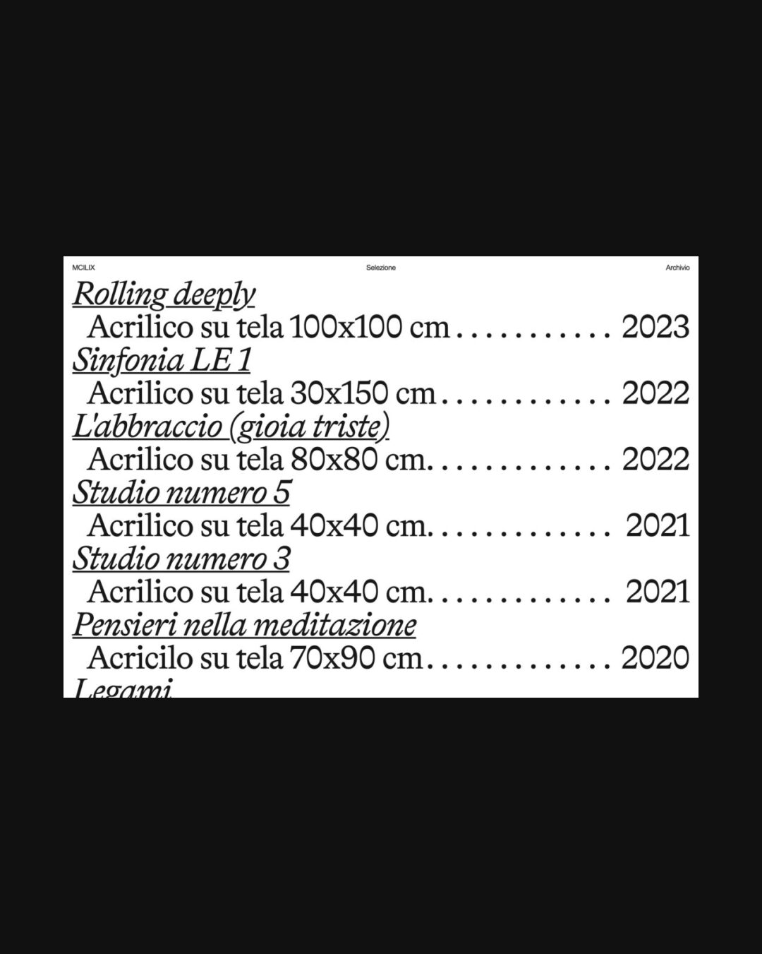 0679 mcilix.com Art, Big Typography, Brutalist, Grid, Large Scale, Light, Table, Black, White, Italy. Design: Norma. Development: Norma. (28-07-2023) ←Close