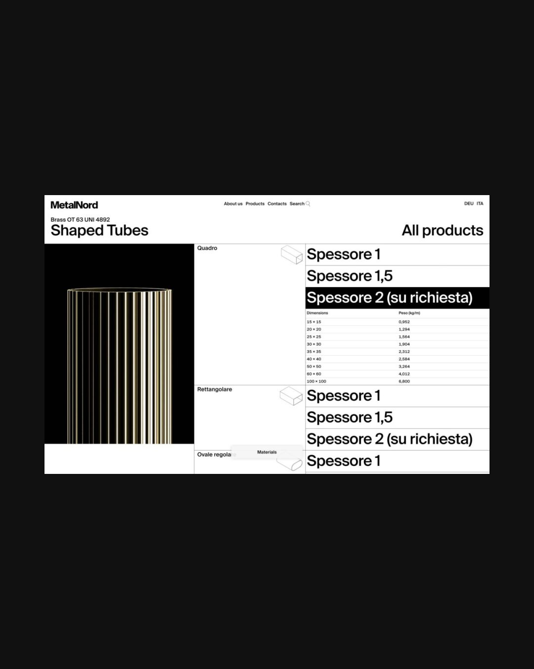 1190 metalnord.it Industrial, Big Title, Bold, Clean, Grid, Large Scale, Light, Sans Serif Typeface, Table, Technologic, White Space, Black, White, Italy. Design: Multi Form. Development: Andrea Serrani. (02-07-2025) ←Close