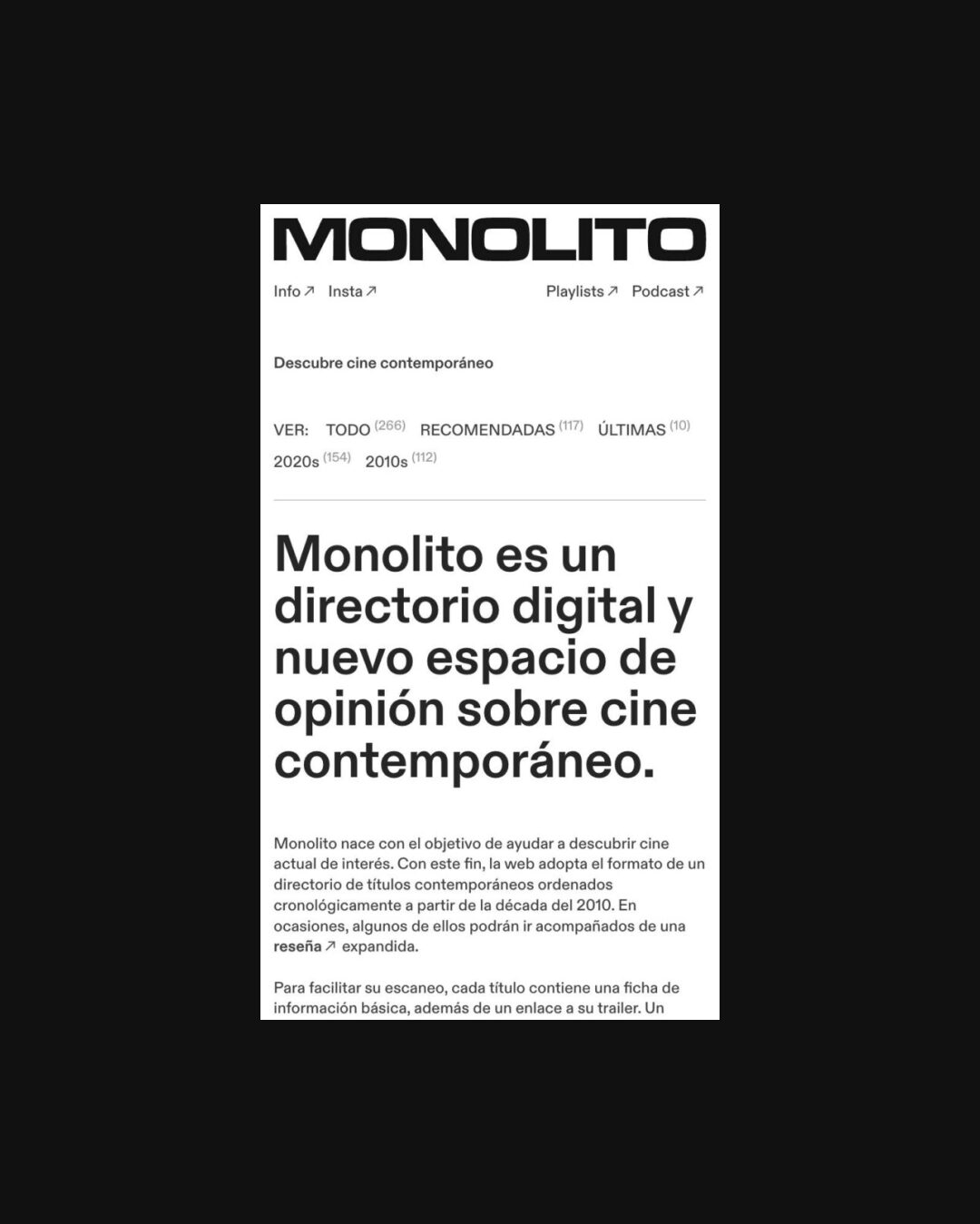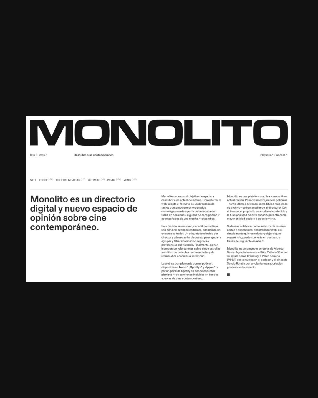 0406 monolitomag.com Blog, Big Images, Big Title, Clean, Grid, Large Scale, Light, Black, White, Spain. Design: Alberto Serna. Development: Alberto Serna. (28-02-2022) ←Close