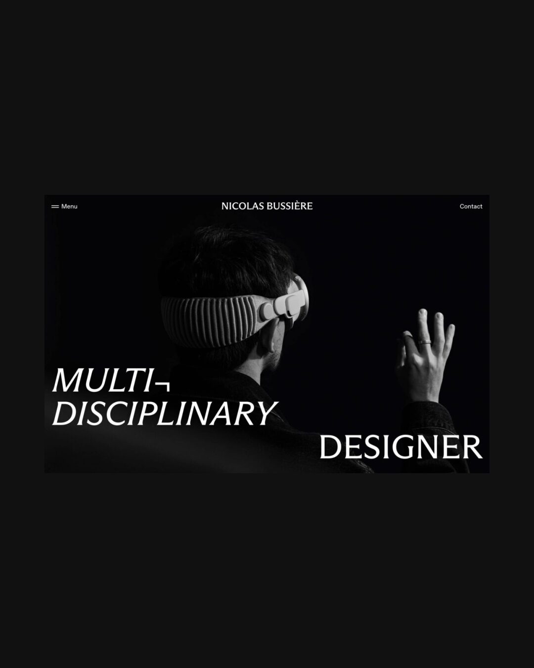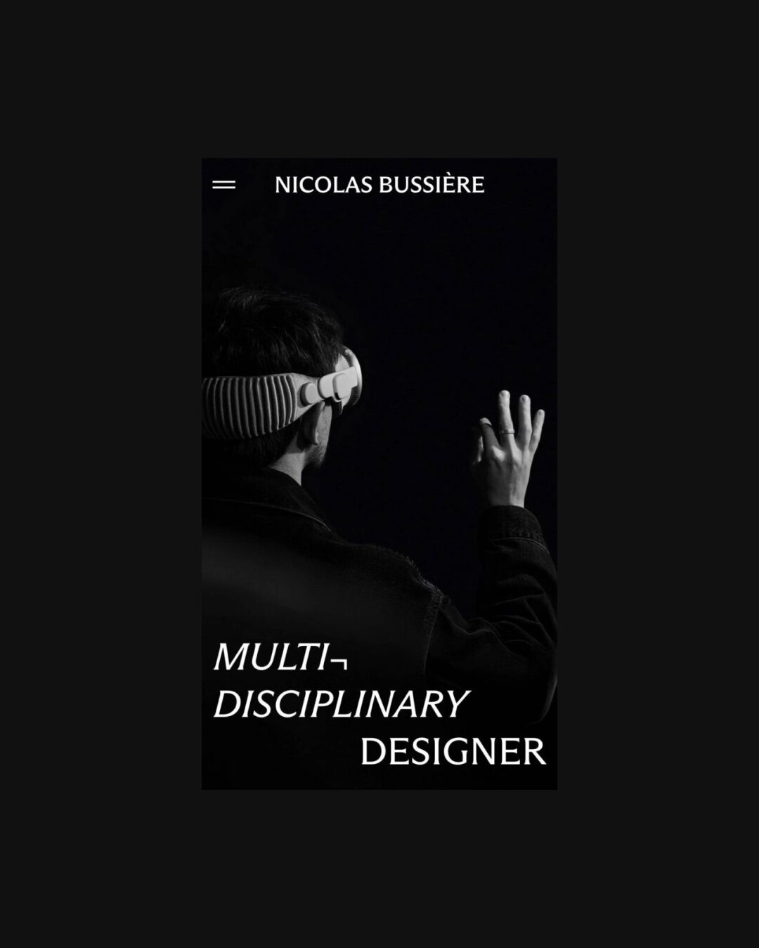 1173 nicolasbussiere.com Design, Animations, Big Title, Big Typography, Clean, Dark, Horizontal Scroll, Large Scale, Mixed Style Typefaces, Scroll Events, Slider, White Space, Black, France. Design: Nicolas Bussière. Development: Antoine Vinial. (11-06-2025) ←Close