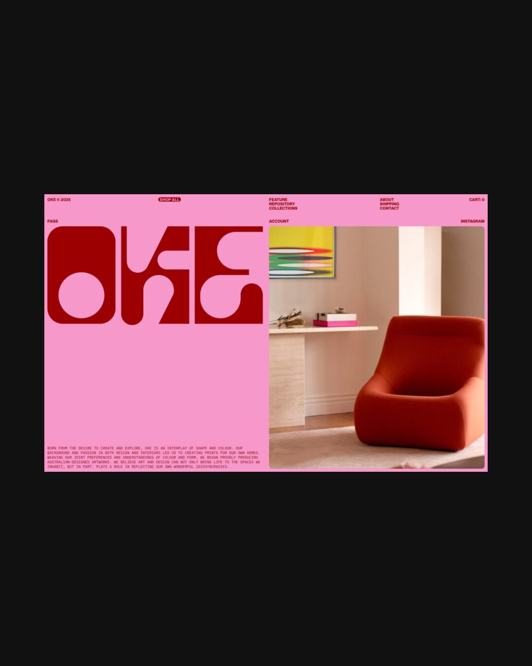 0294 oke-art.space Art, Big Images, Big Title, Big Typography, Colorful, Grid, Large Scale, Scroll Events, Maroon, Pink, Viridian, Australia. Design: Thought Found. Development: Thought Found. (20-08-2021) ←Close
