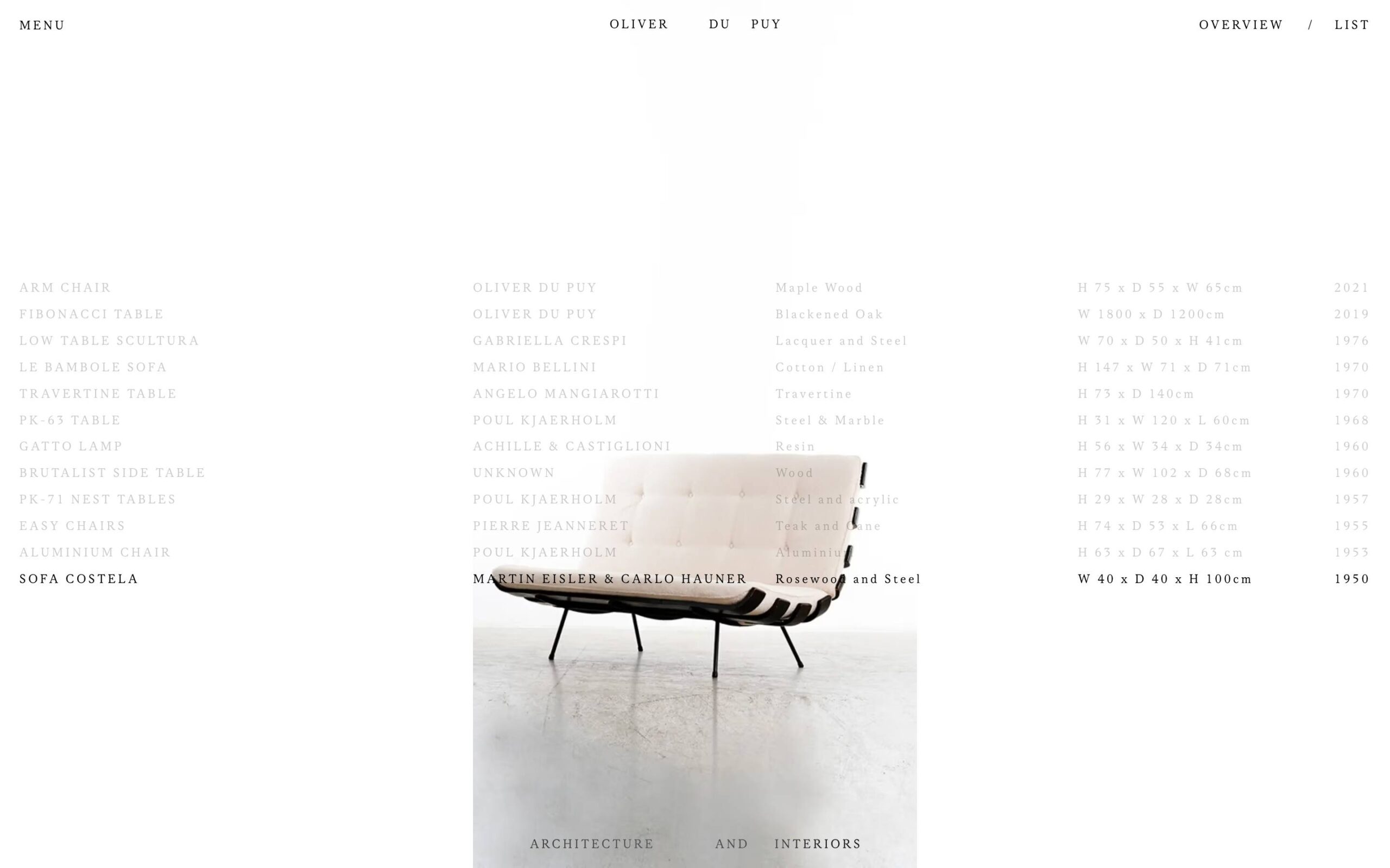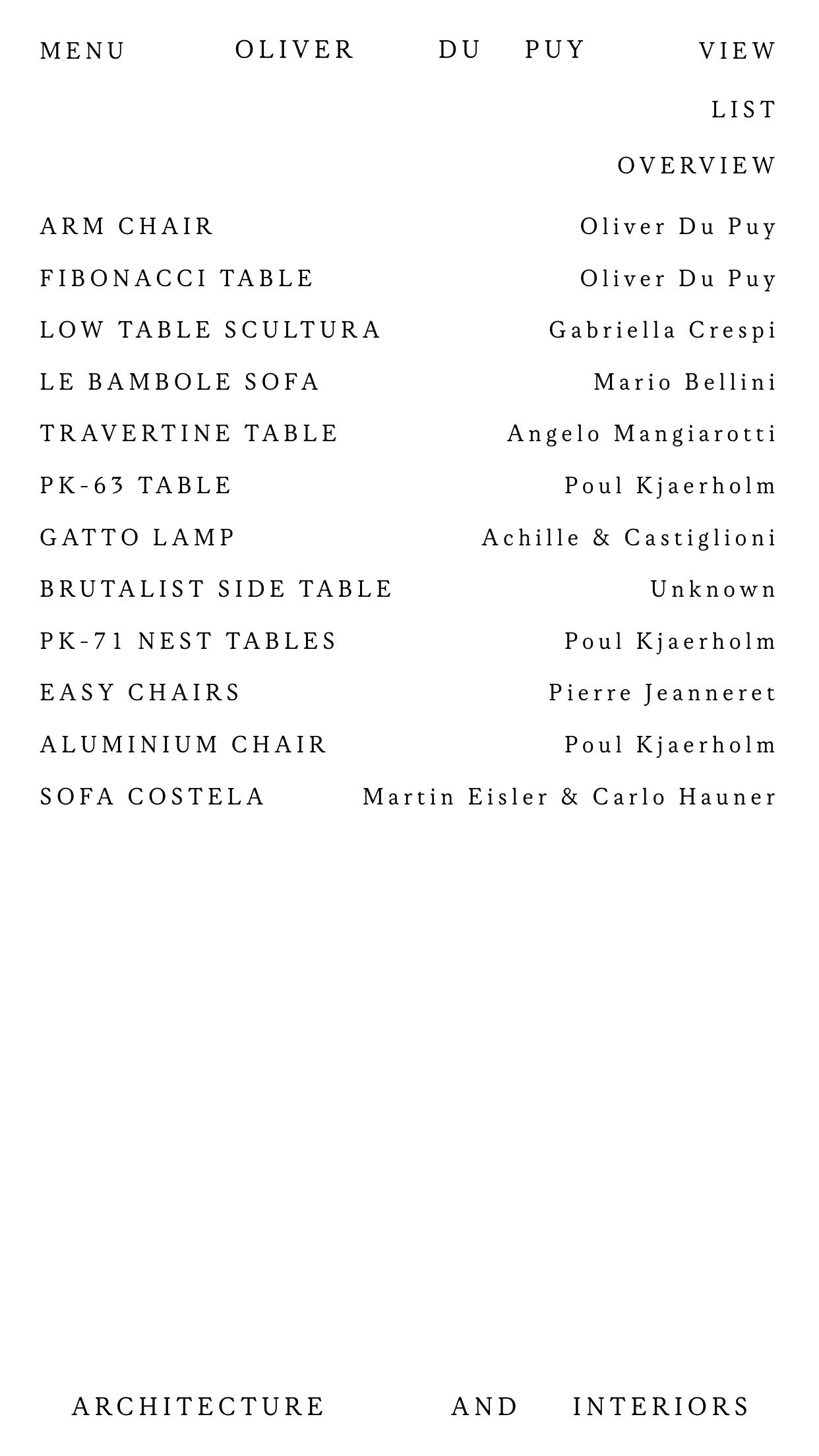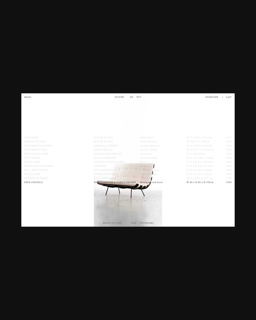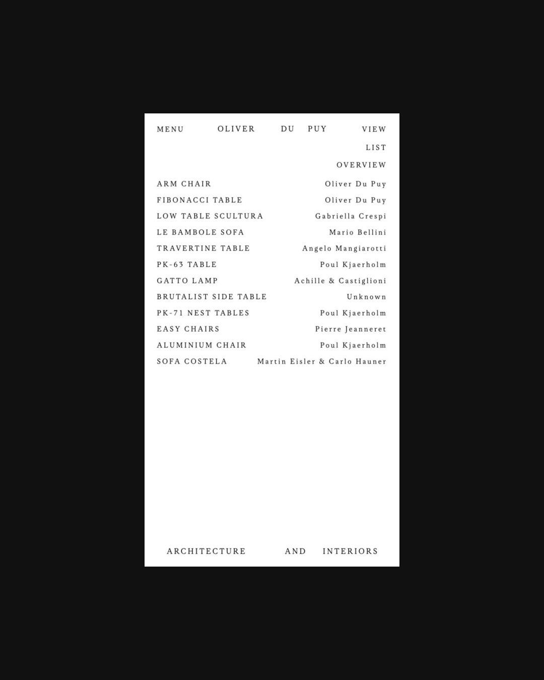 1305 oliverdupuy.com Architecture, Bright, Clean, Grid, Large Scale, Layered, Light, Minimal, Mixed Style Typefaces, Simple, Small Typography, White Space, Chocolate, Coffee, Australia. Design: SCCO Studio. Development: Sasha Burger. (12-11-2025) ←Close