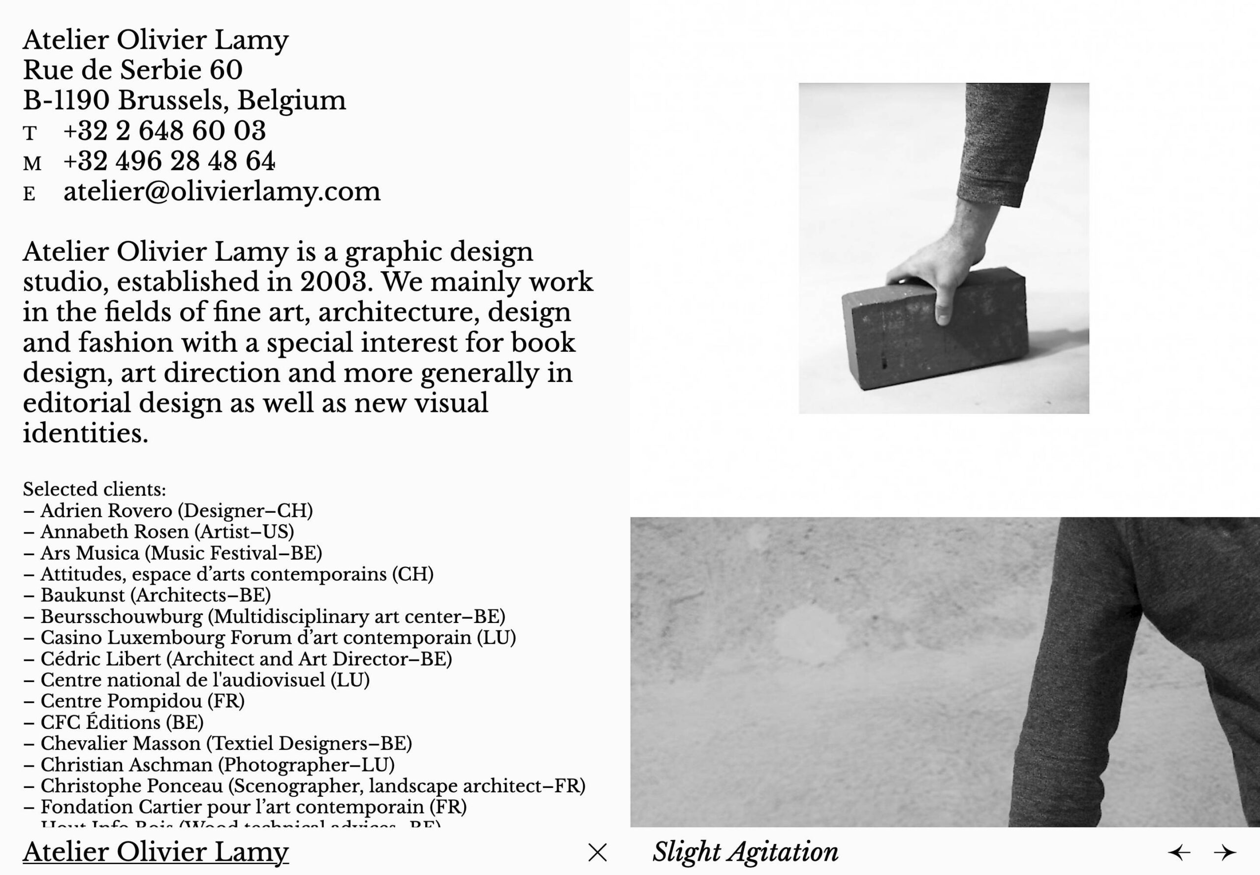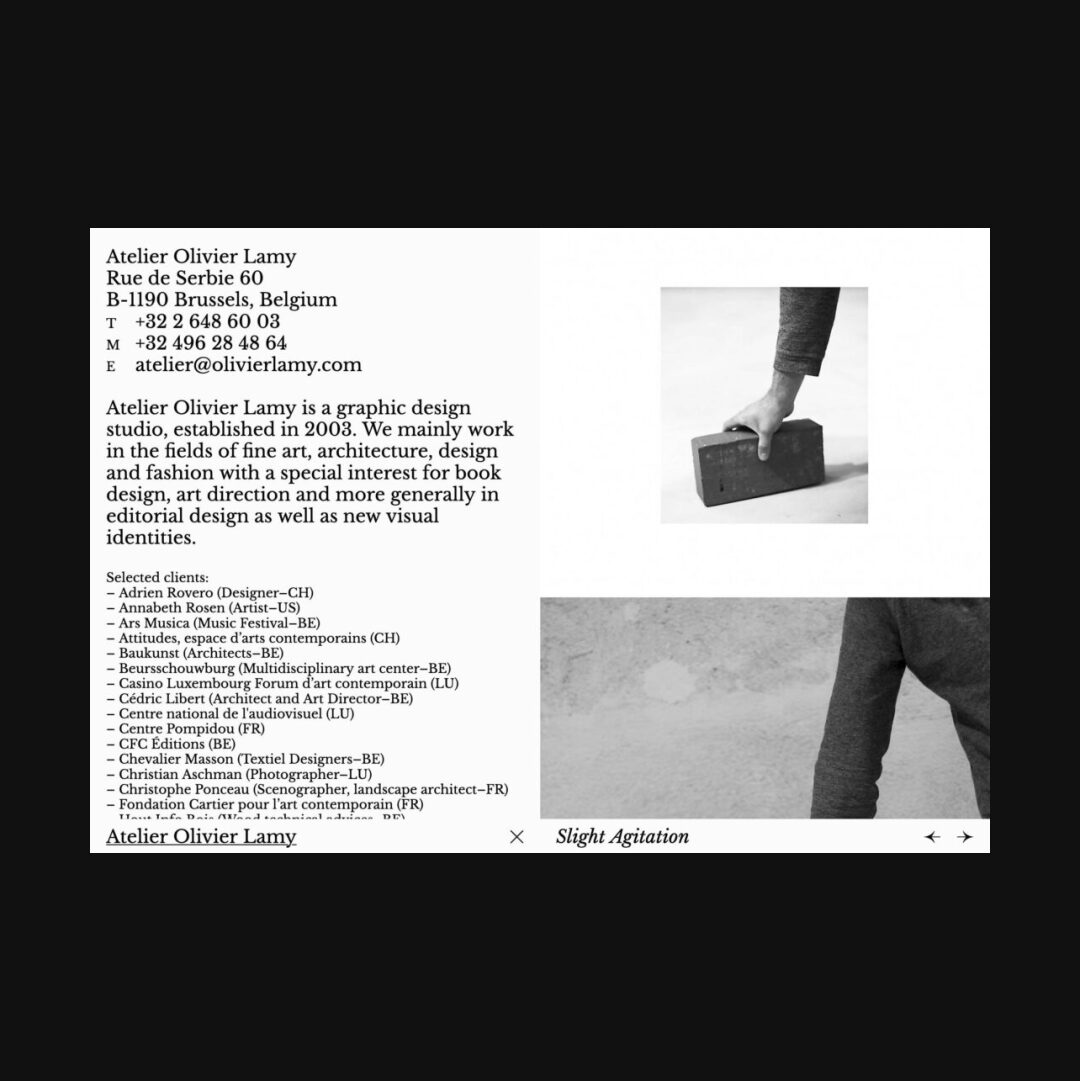 0009 olivierlamy.com Design, Big Images, Clean, Creative Layout, Light, Scroll Events, Silver, White, Belgium. Design: Studio Harris Blondman. Development: Studio Harris Blondman. (02-01-2017) ←Close