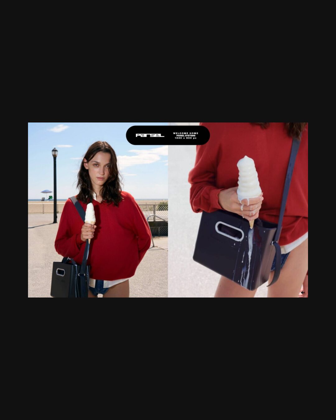 1318 parsel.com Bags, Big Typography, Bold, Bright, Clean, E-commerce, Editorial, Large Scale, Layered, Overlay Containers, Pattern, Sans Serif Typeface, Table, Technical, Maroon, Silver, USA. Design: Studio Temp. Development: Tilt. (28-11-2025) ←Close